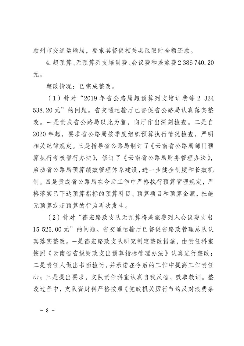 欧乐影院 关于报送2019年度预算执行和其他财政收支审计查出问题整改情况的函