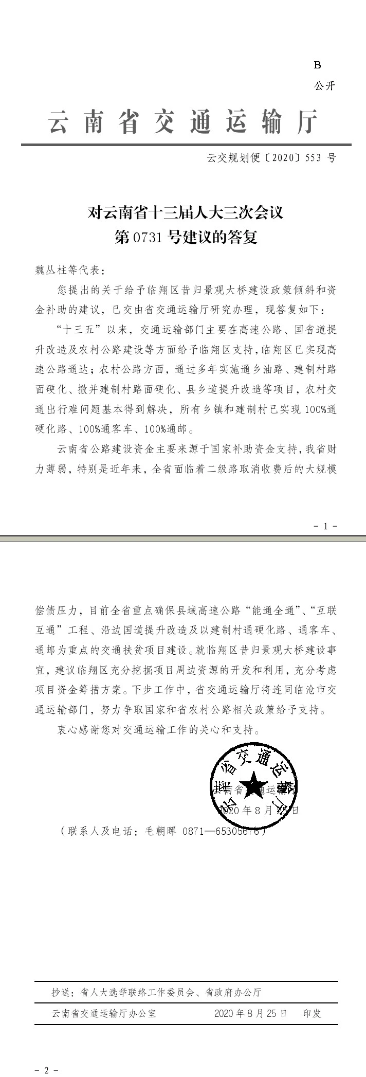 对云南省十三届人大三次会议第0731号建议的答复