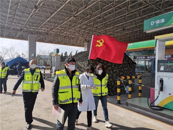 为坚决贯彻落实习近平总书记关于打赢疫情防控阻击战重要指示精神,激励引导党员干部在疫情防控阻击战中挺身而出、英勇奋斗、扎实工作,2月1日,云南交投曲靖管理处联合卫健、交警、路政等5家疫情防控成员单位在云南和贵州省界附近的曲胜高速公路白水服务区疫情监测点成立临时联合党支部,由曲靖管理处曲胜分处党总支书记、分处长叶鹏任临时联合党支部书记,将党旗插在了疫情防控一线,让党旗在疫情防控斗争现场高高飘扬。在党支部书记叶鹏的带领下,该支部党员庄严宣誓,请命赴战。