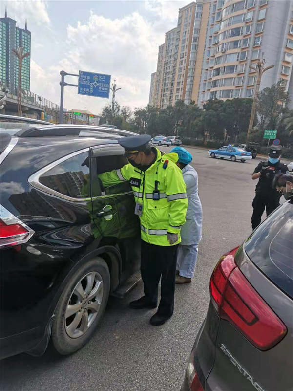 袁林波就是他们中的一员。他在队里是老同志,但他并没有摆老资格,平常工作他都是抢在最前面去做,疫情来临时,他更是勇敢的站出来把自己置于最危险的地方,让同事们从事相对安全的工作。一天在参加防控检查时,一辆外地牌照的车辆四名乘客体温都高过正常值,车里的四名乘客也心慌了起来。袁林波把车辆引导到安全位置,让四名乘客开窗通风,原地休息一会儿后再进行测量。后面经过再次测量,四名乘客的体温全部回归正常,还好是虚惊一场。事后他告诉同事:“别看我当时镇定,其实我心虚啊。如果那四名乘客体温不正常被送去医院的话,我就只有回去隔离了,不能把同事们也传染了。”话虽这么说,可是第二天一早,他又戴上口罩再次出现在了防控点上。
