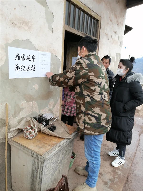 按照“网格式+地毯式”的工作要求,徐鹏和防疫工作队员通过走村入户,对新场村的外出返乡人员、外来人员进行详细摸排,全面掌握人员流入、流出动向,认真做好记录,做到心中有数、不漏一户、不漏一人。对于排查出的39户82人,严格落实居家隔离措施,张贴隔离提示,安排专人做好监控,督促每日上报体温测量情况。