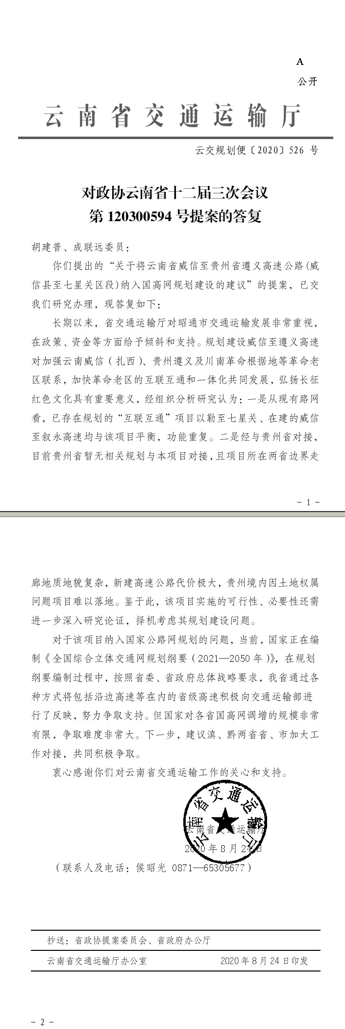 对政协云南省十二届三次会议第120300594号提案的答复