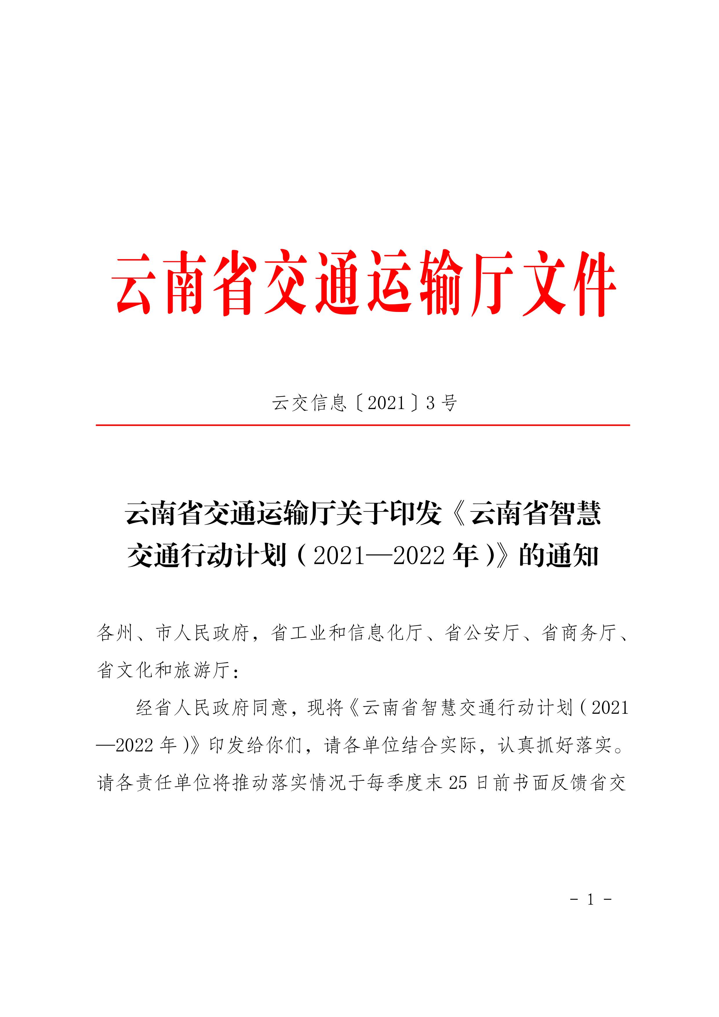 欧乐影院 关于印发《云南省智慧交通行动计划(2021—2022年)》的通知