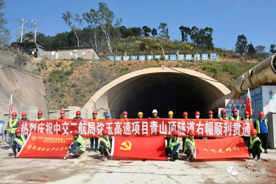 近日,弥玉高速(华宁段)青山顶隧道右幅顺利实现贯通,这也是弥玉高速(华宁段)单幅贯通的首条长隧道。