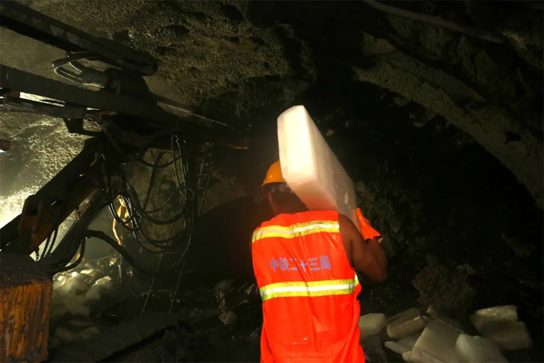 独头掘进距离超过6公里,洞内空气循环差,含氧量不足6.1%,湿度却接近100%,隧道最前端掌子面环境温度常年在42摄氏度以上。