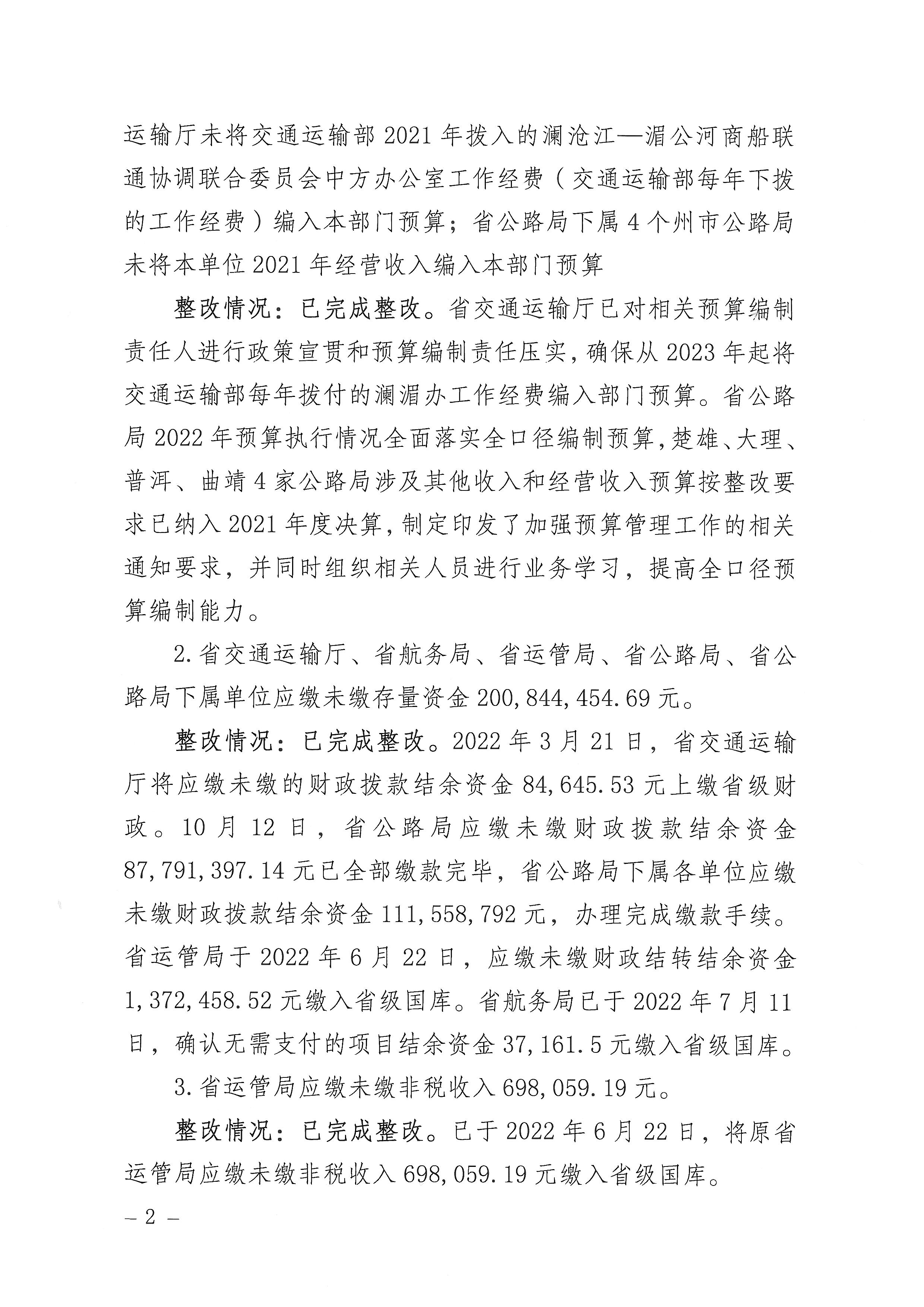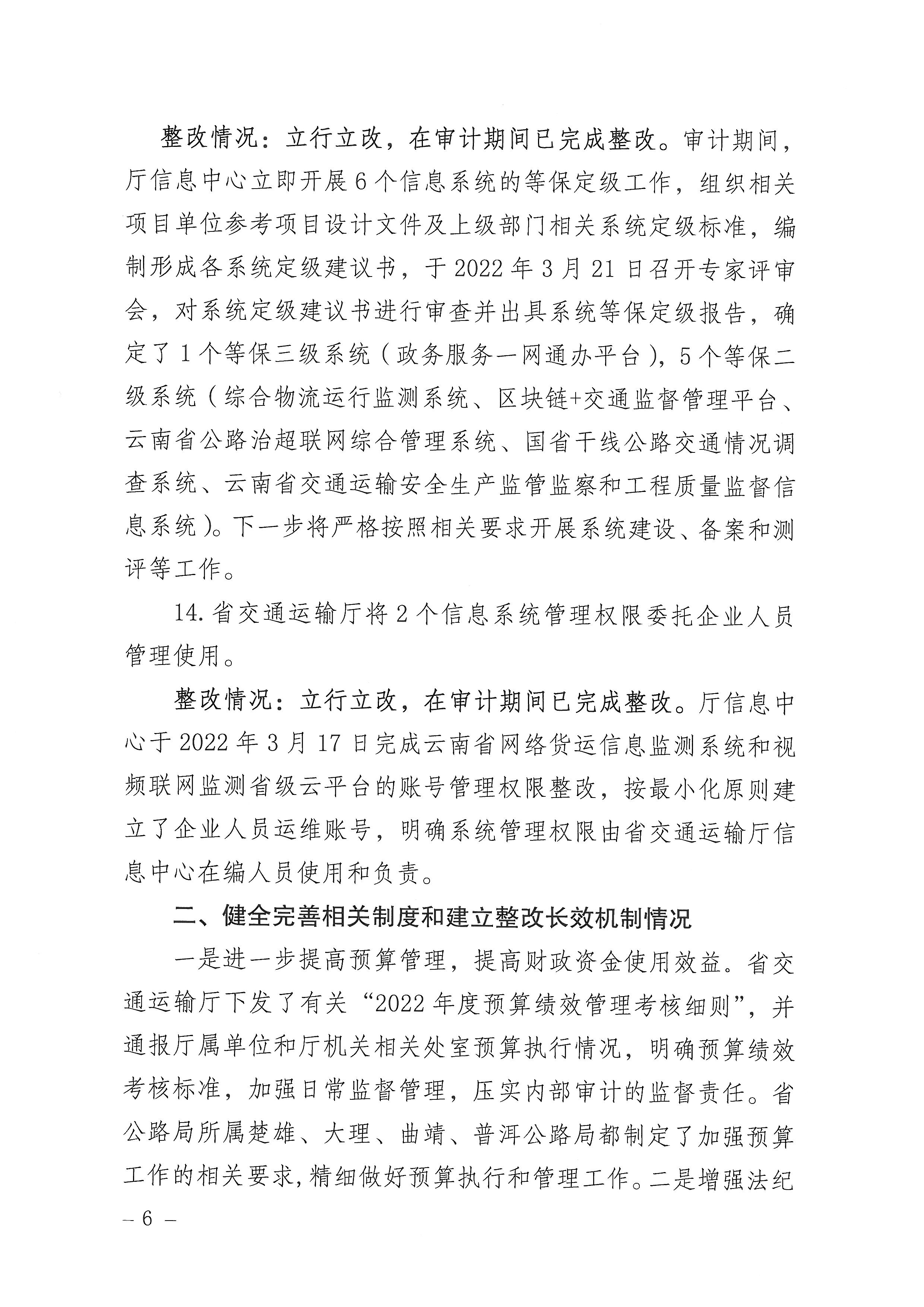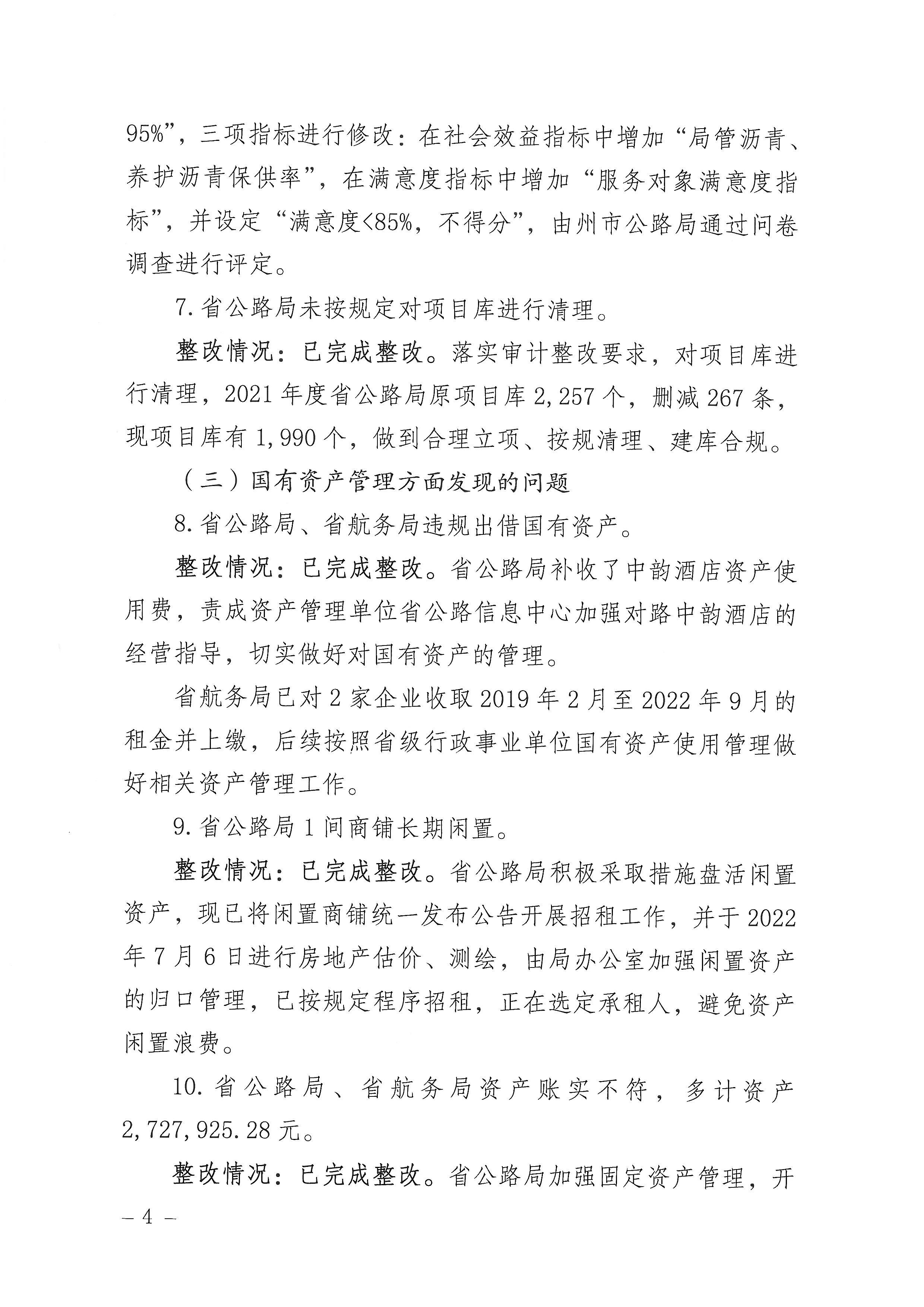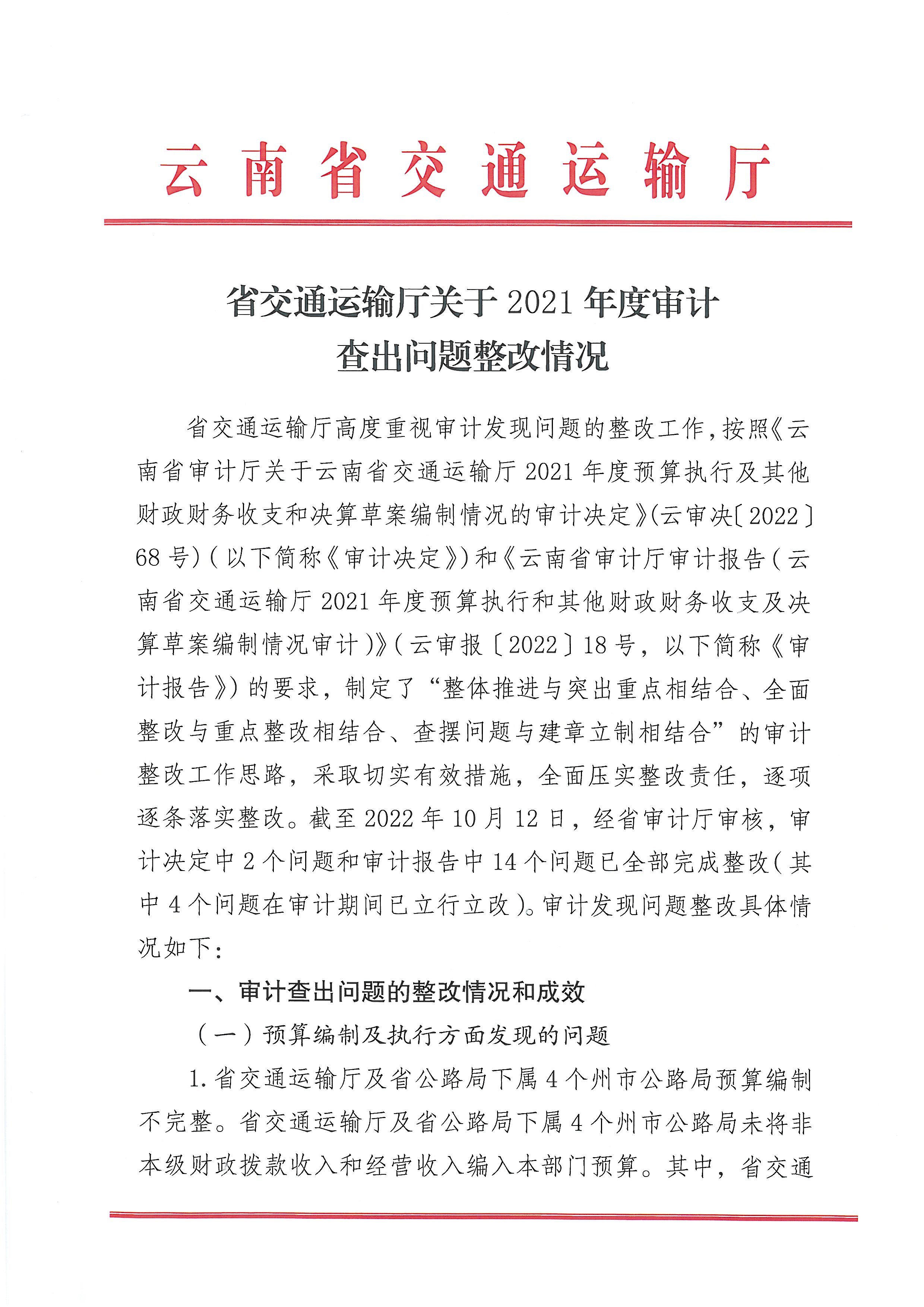 省交通运输厅关于2021年度审计查出问题整改情况