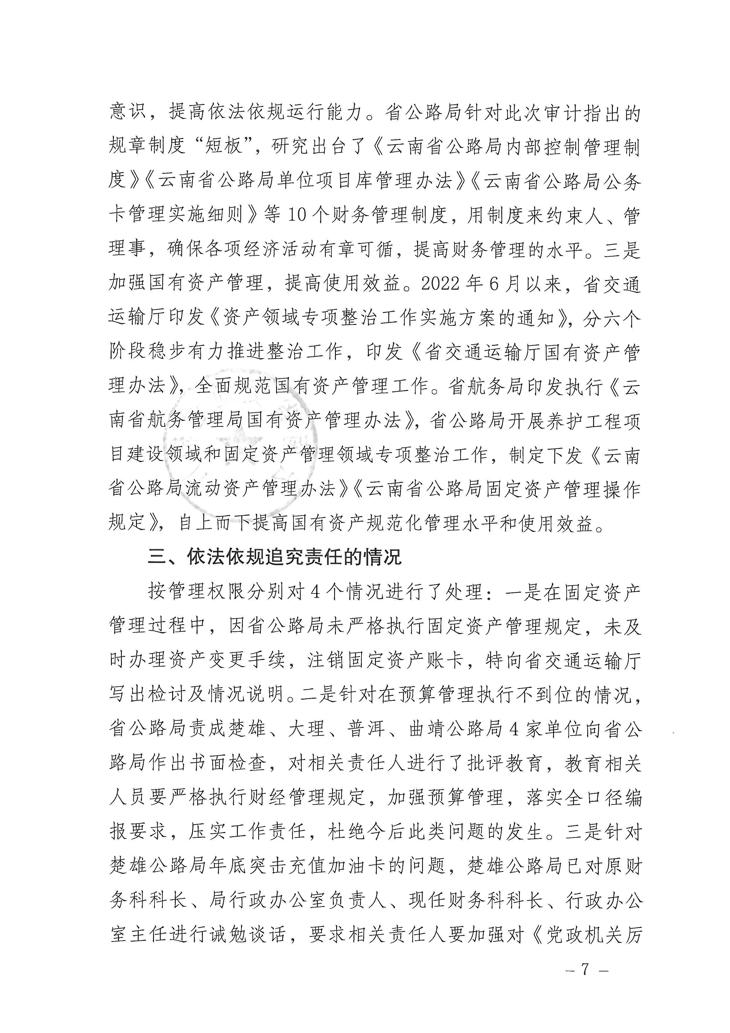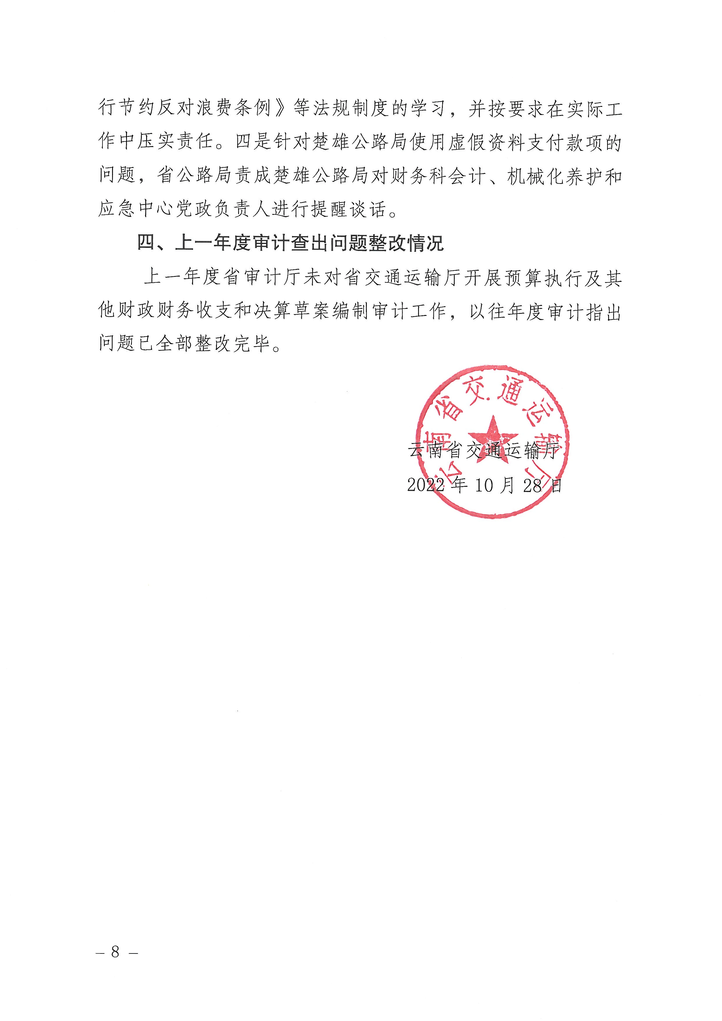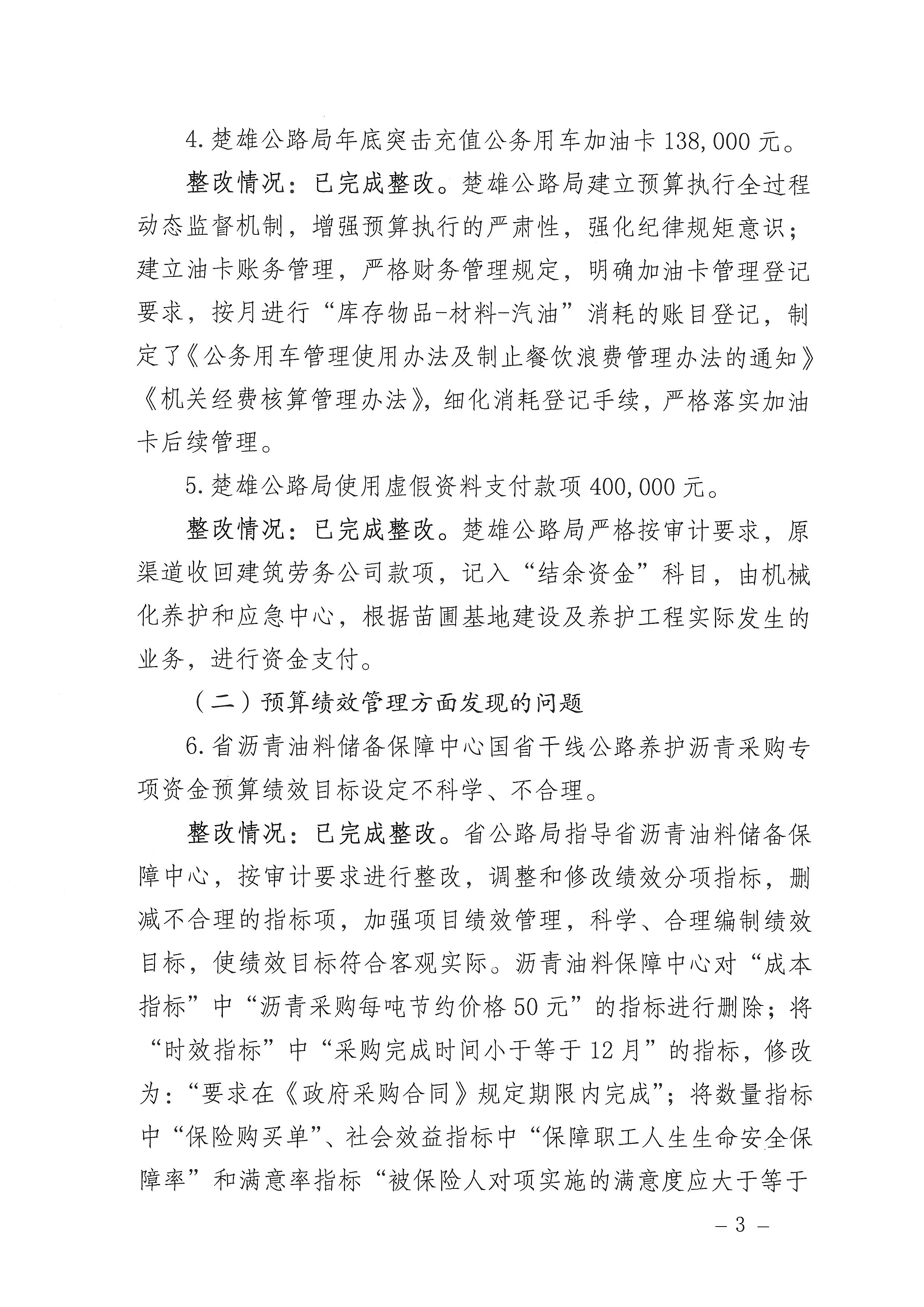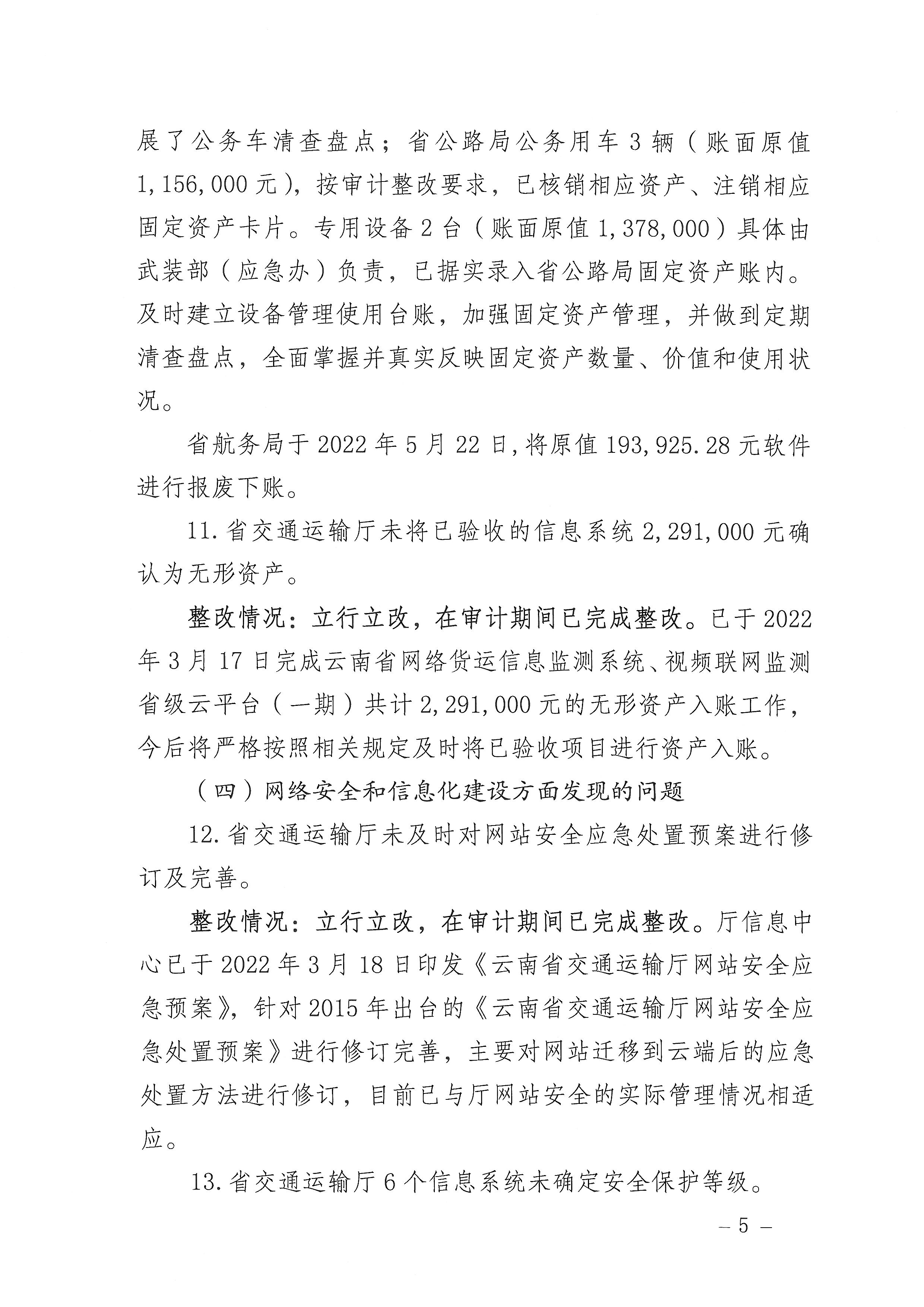 省交通运输厅关于2021年度审计查出问题整改情况