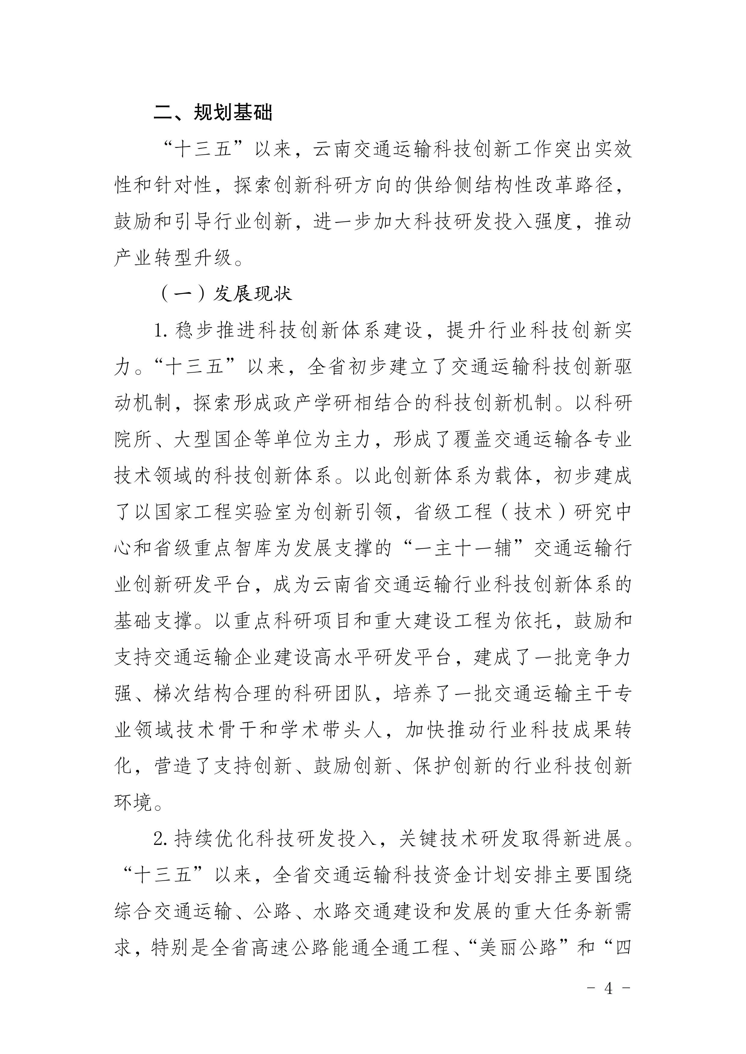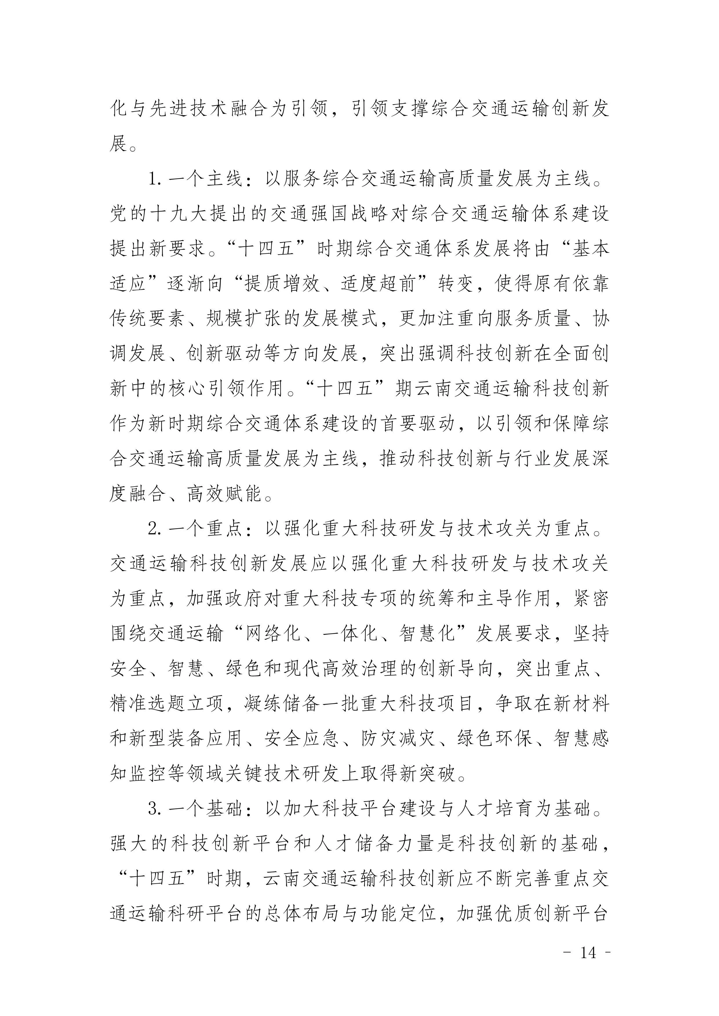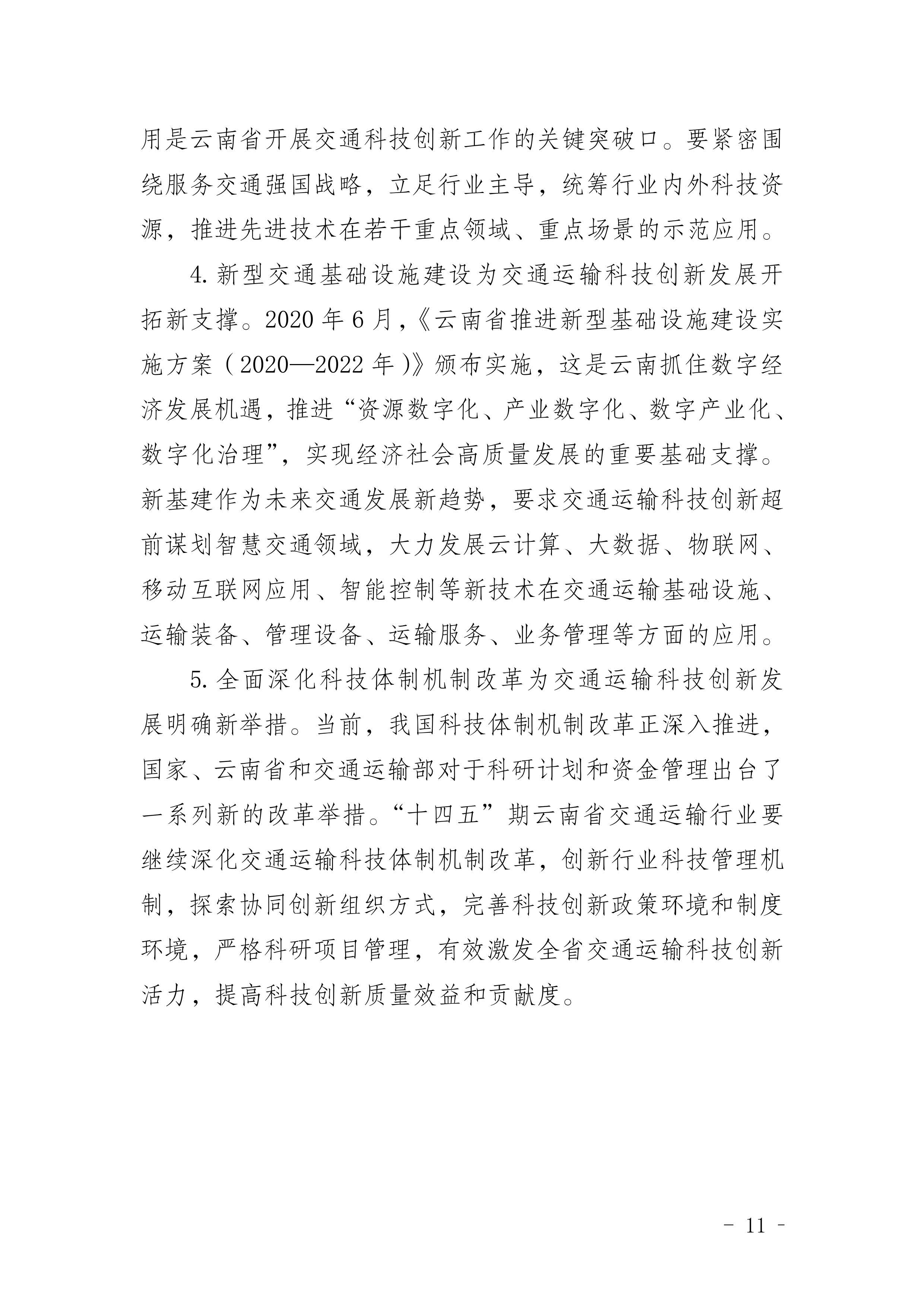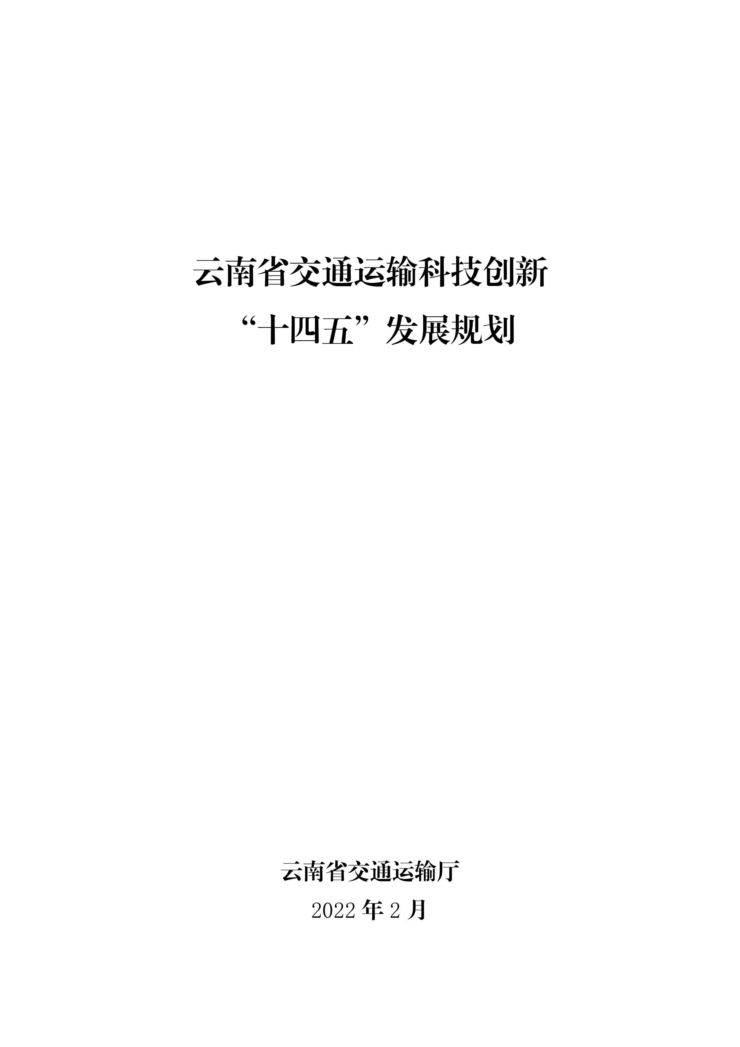 《云南省交通运输科技创新“十四五”发展规划
