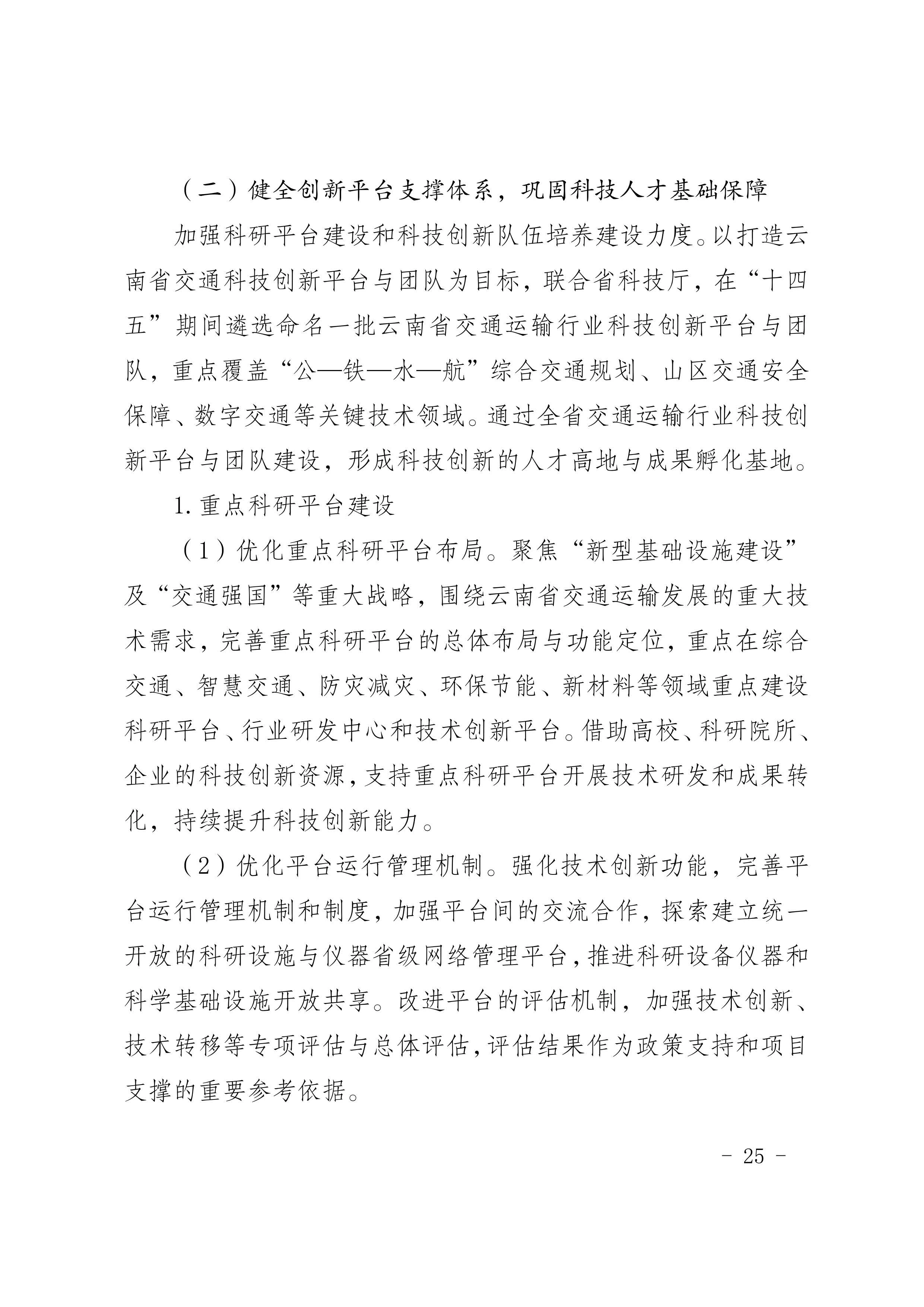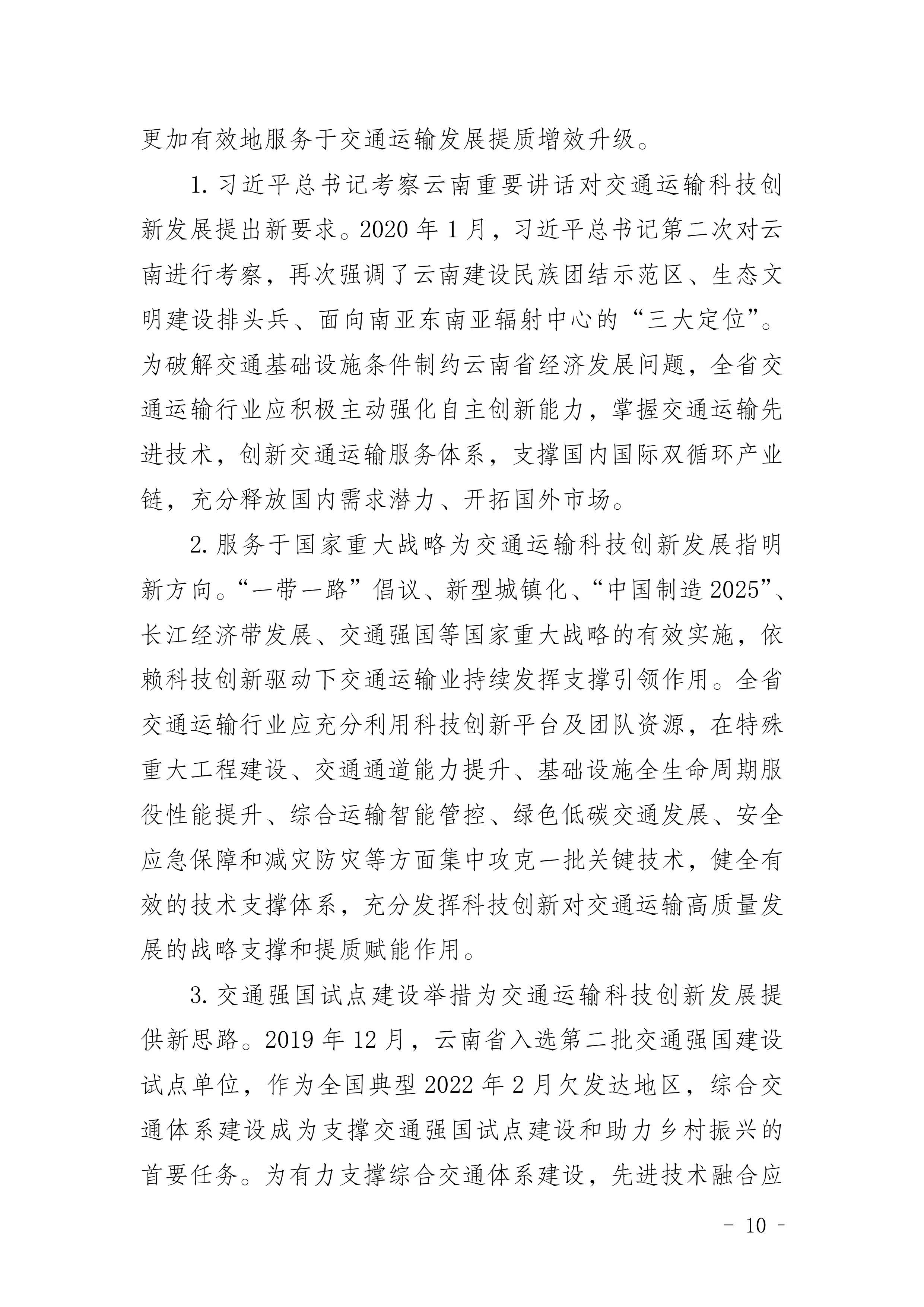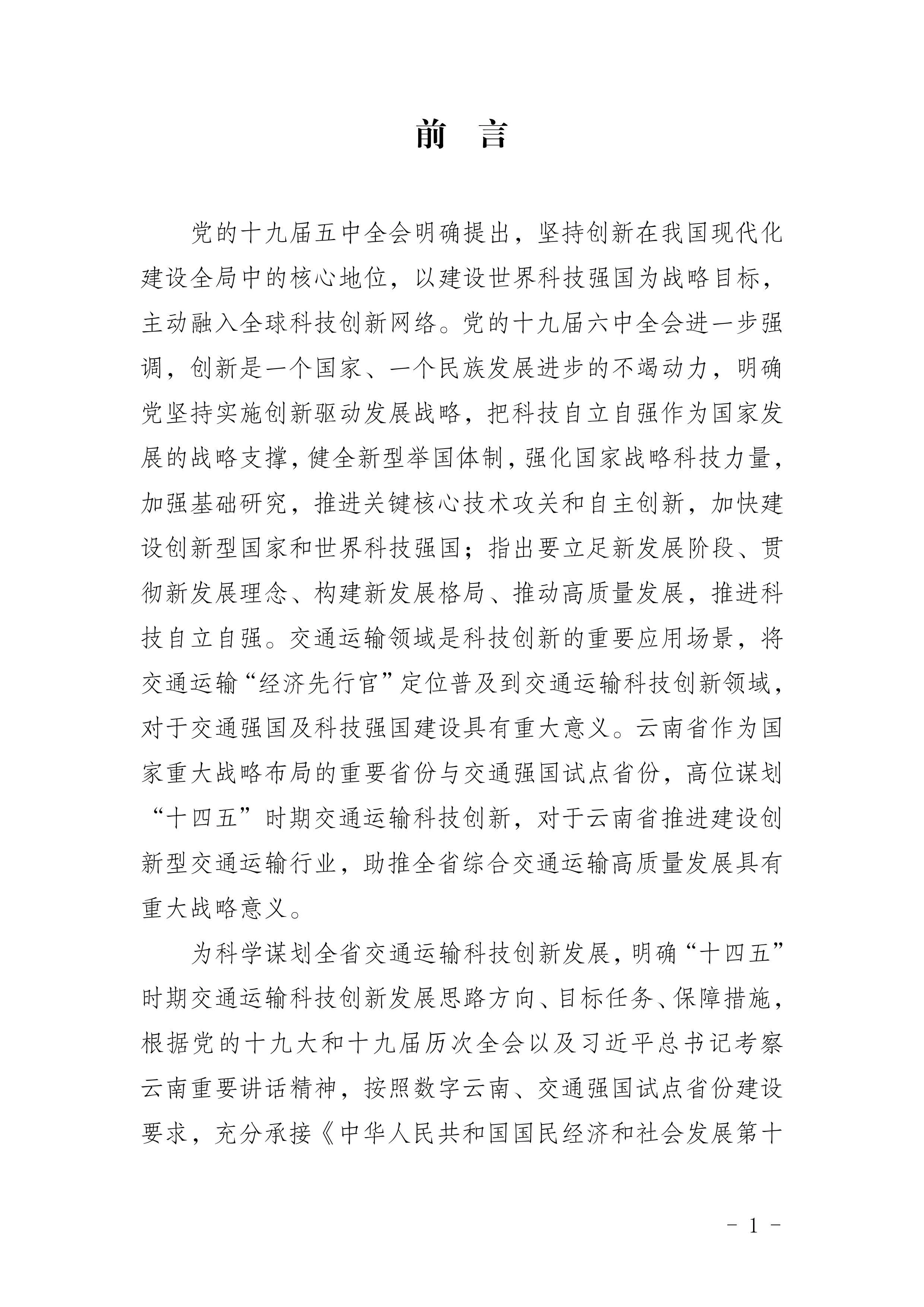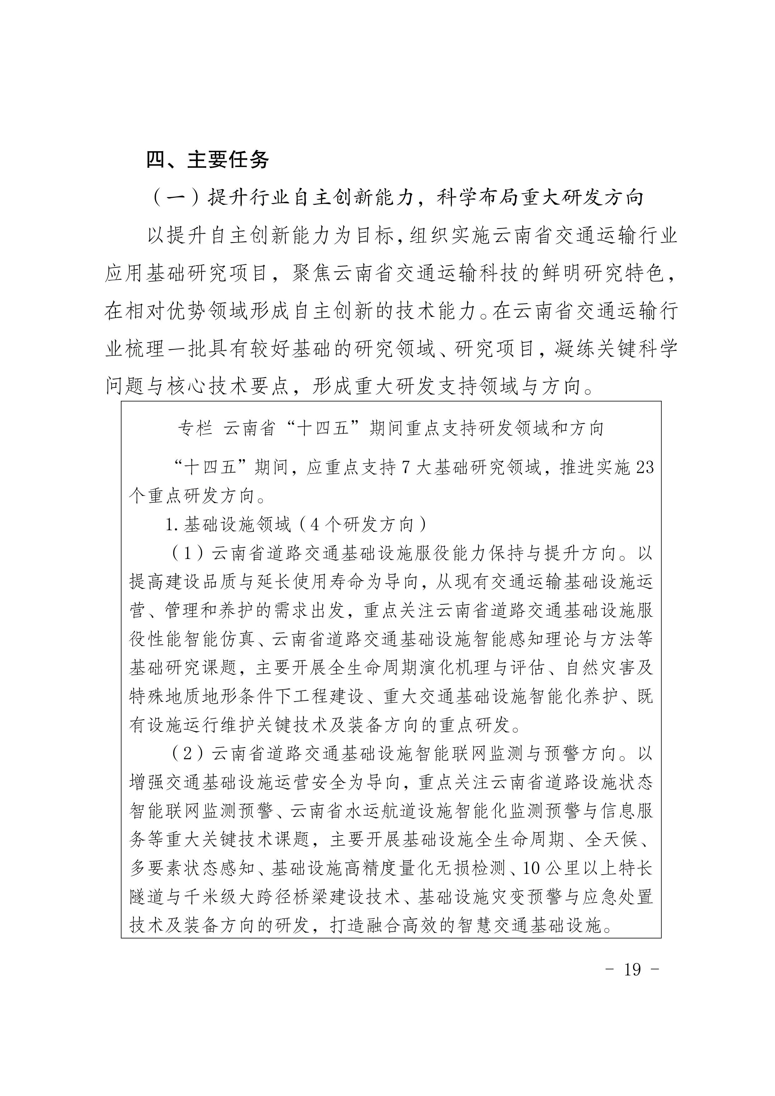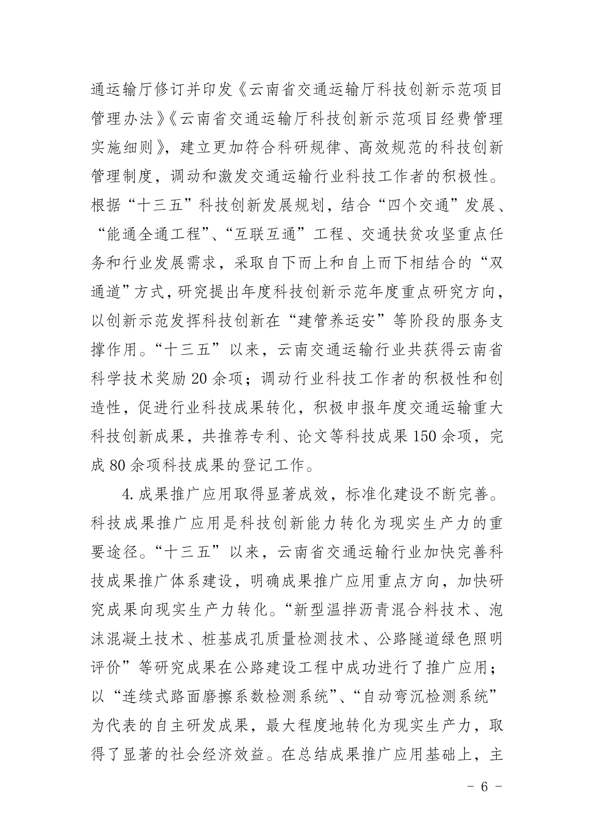 《云南省交通运输科技创新“十四五”发展规划