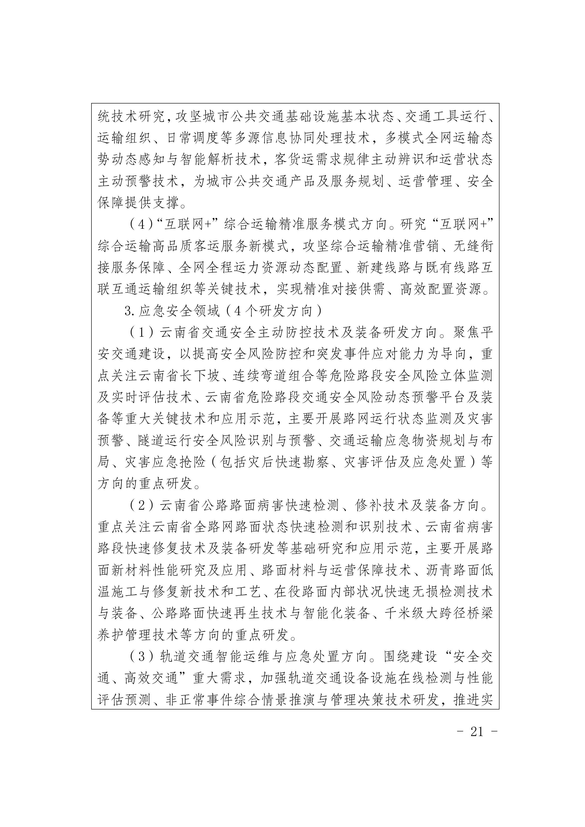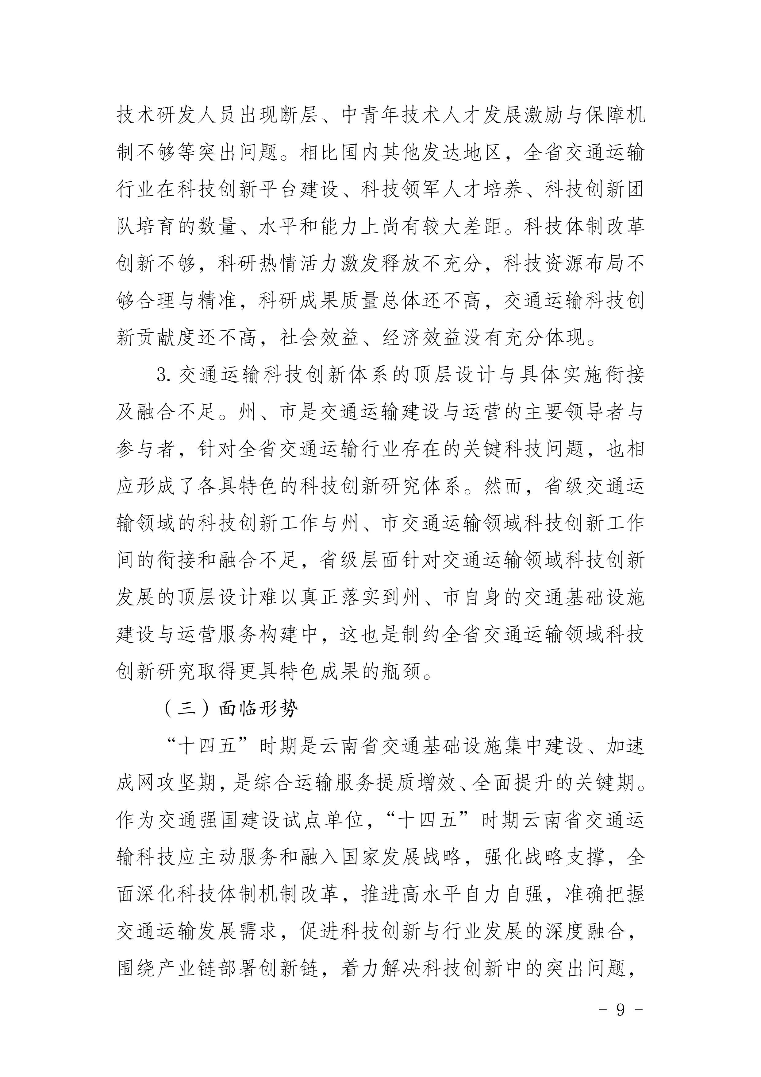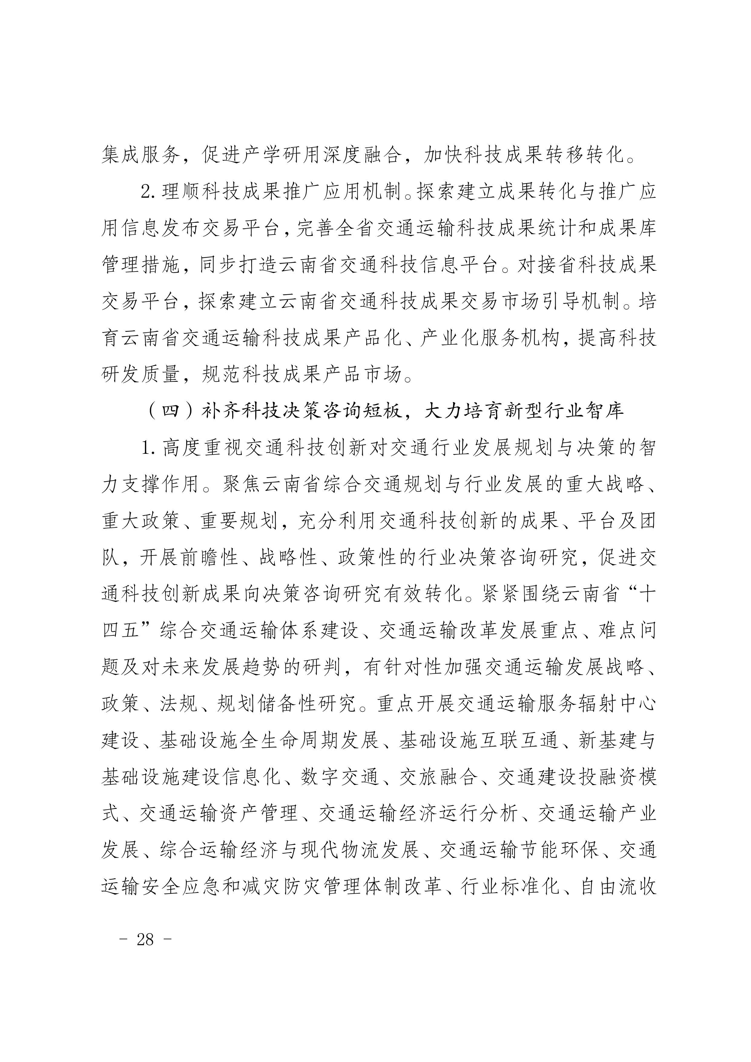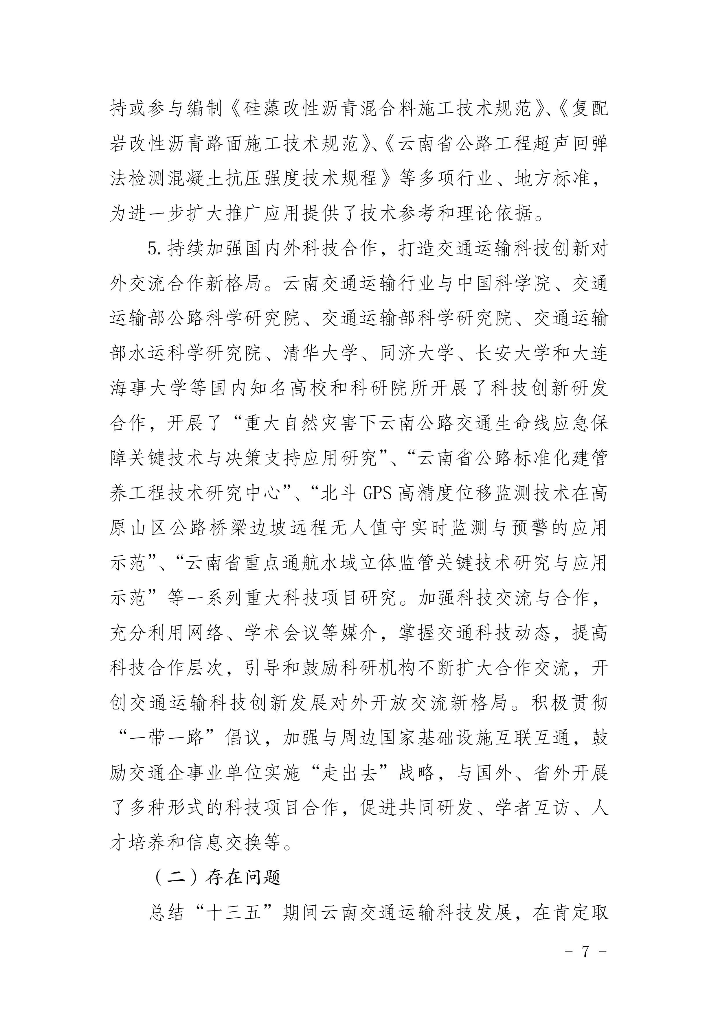 《云南省交通运输科技创新“十四五”发展规划