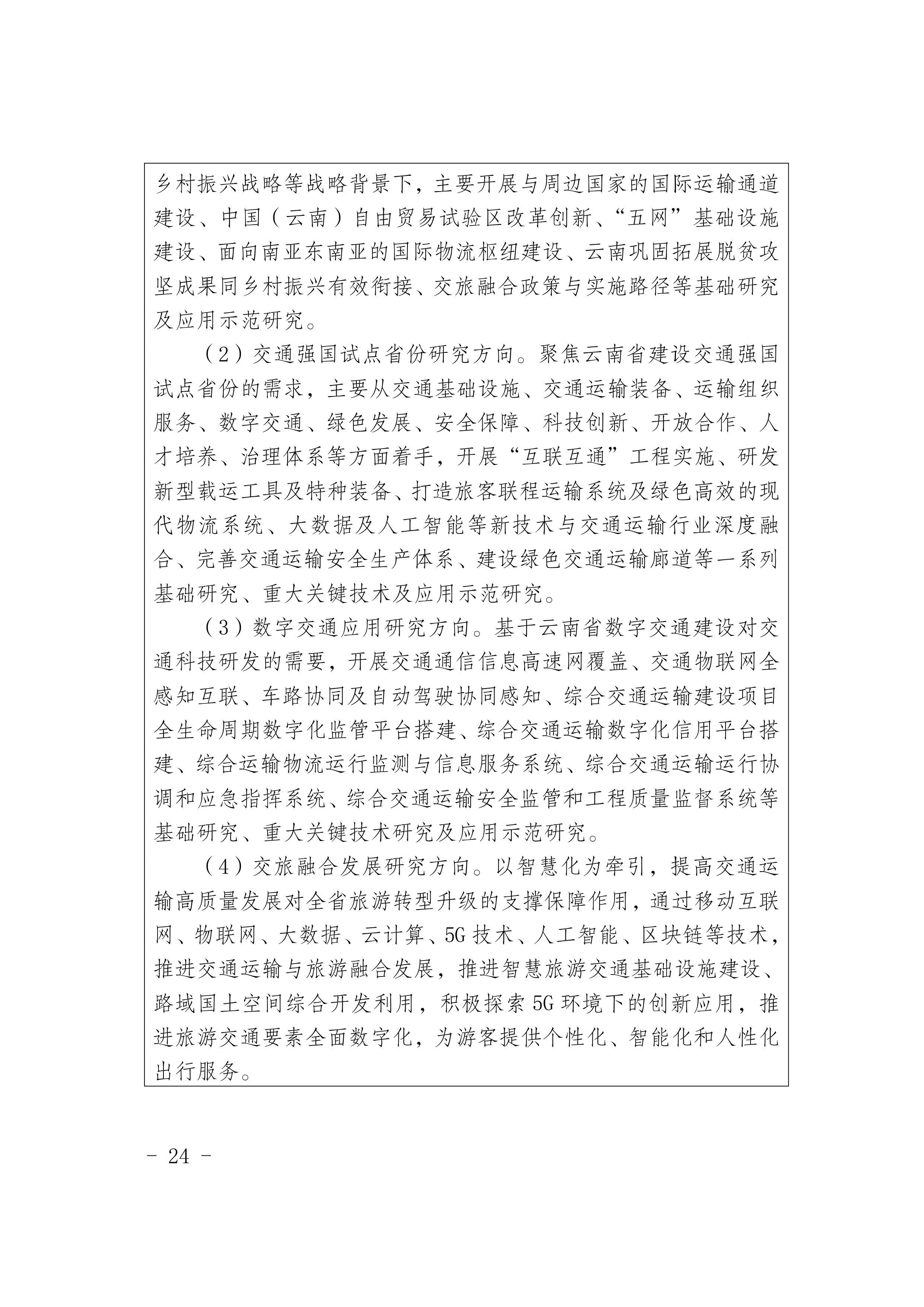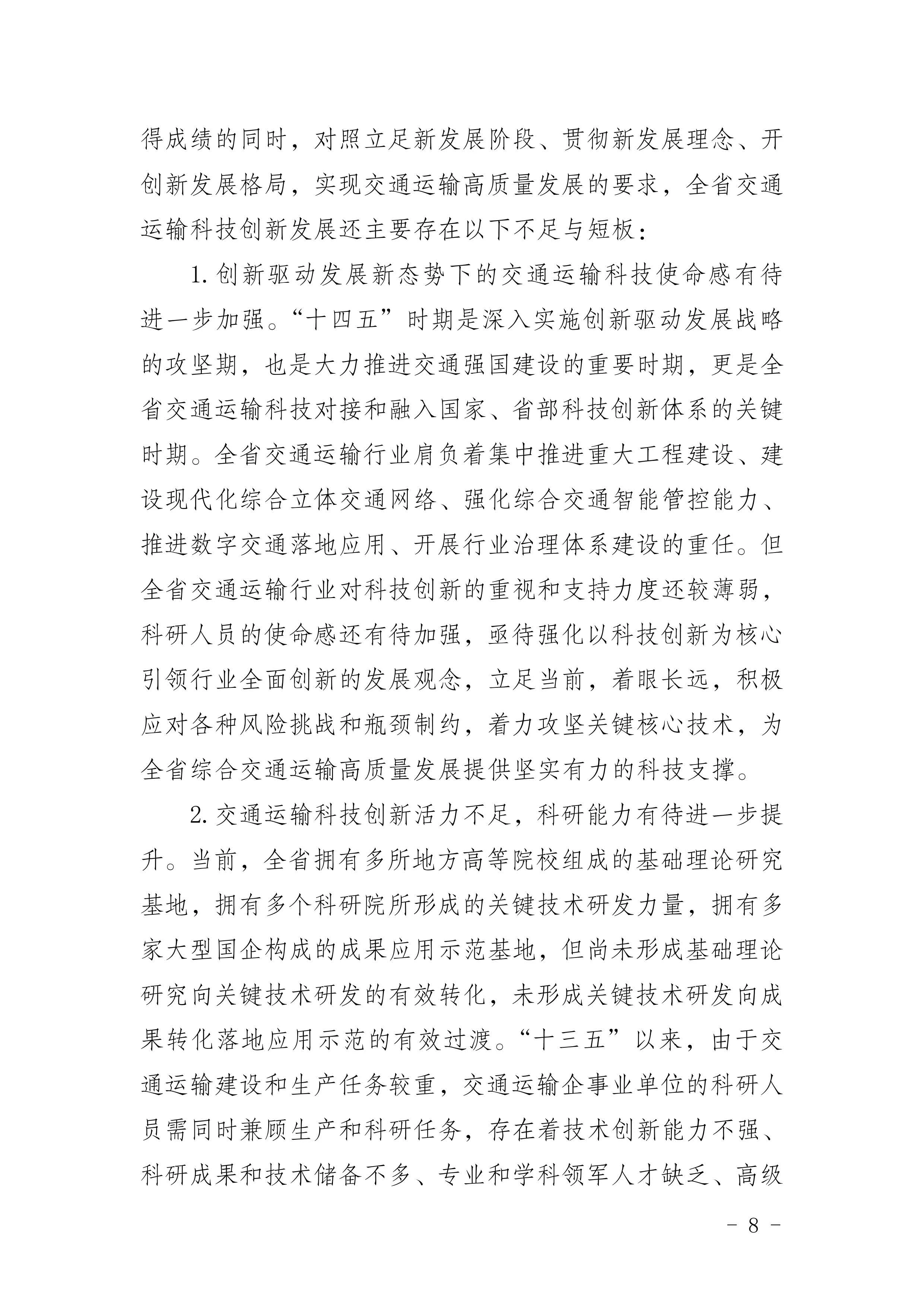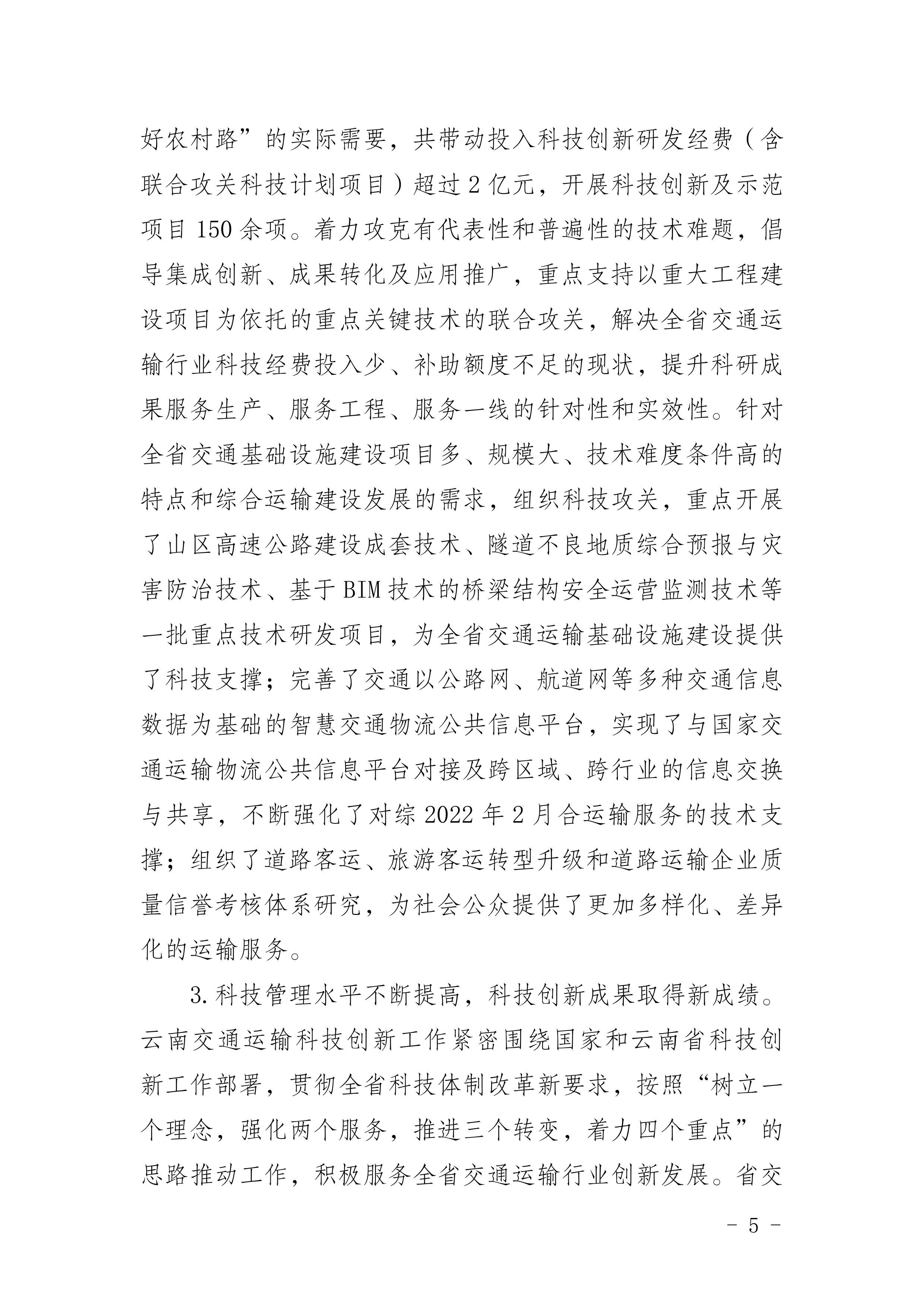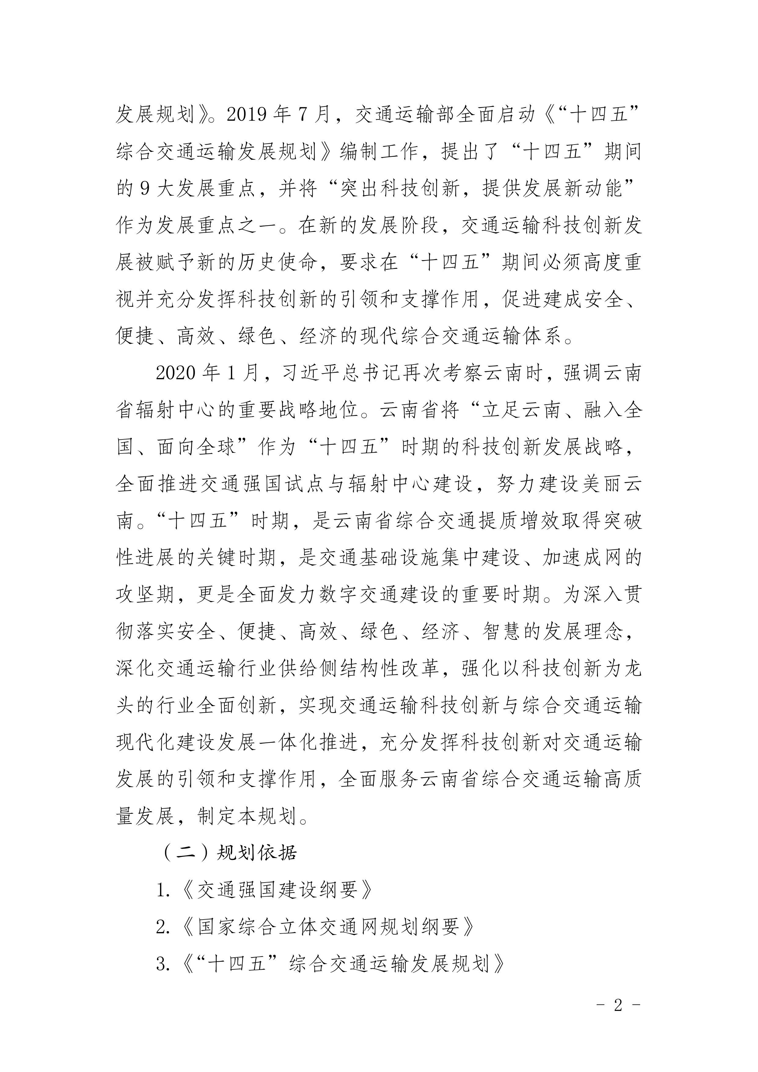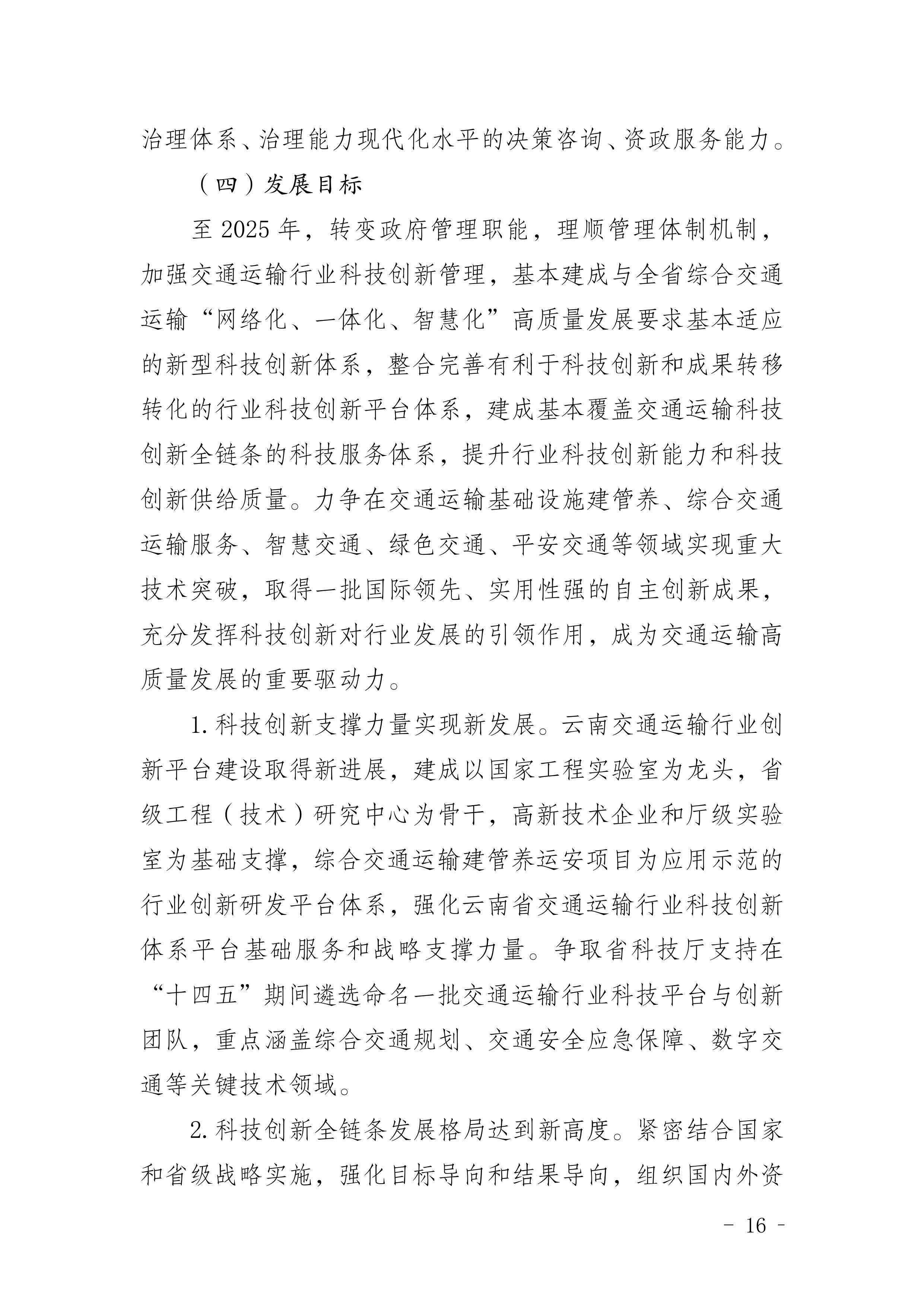 《云南省交通运输科技创新“十四五”发展规划