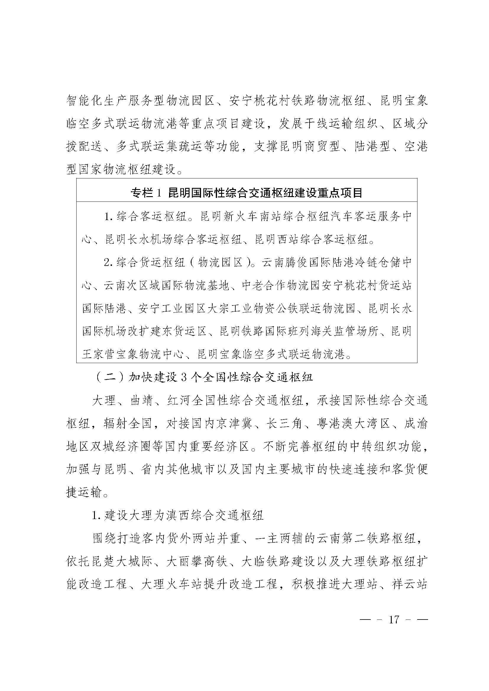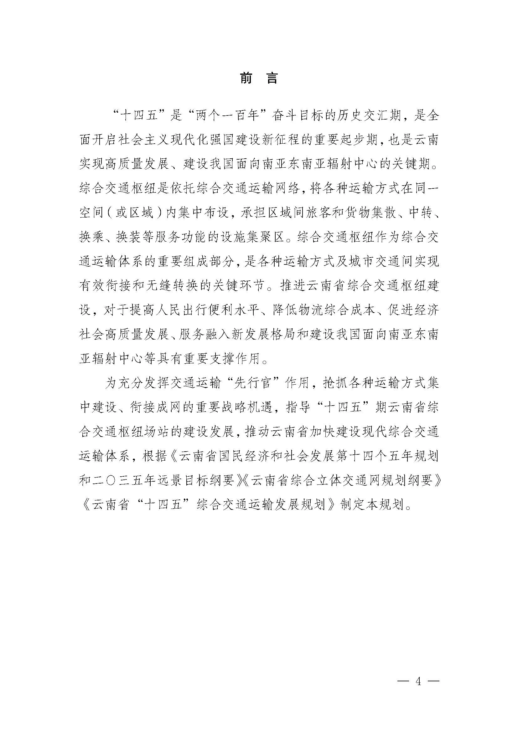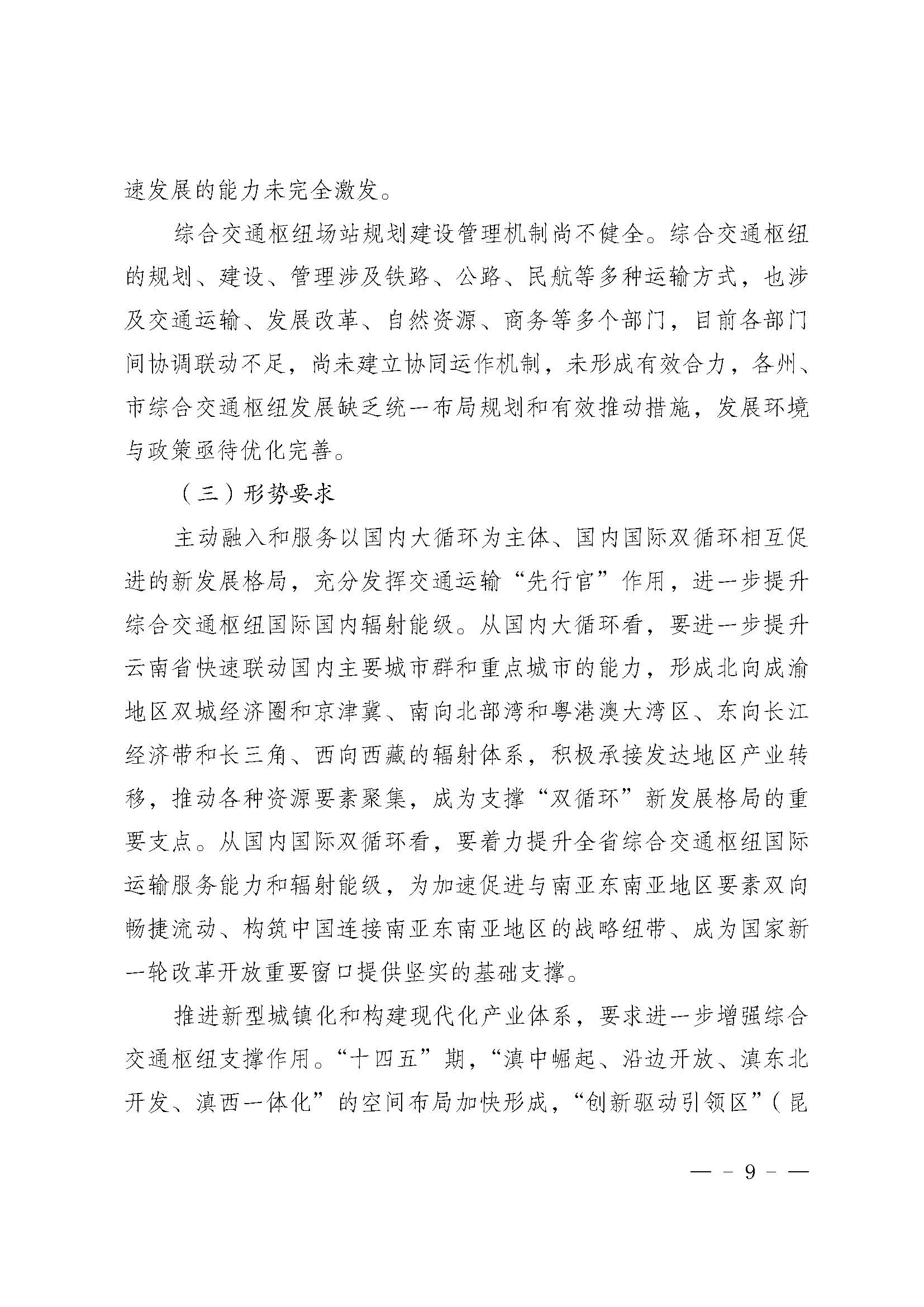 《云南省综合交通枢纽“十四五”发展规划》