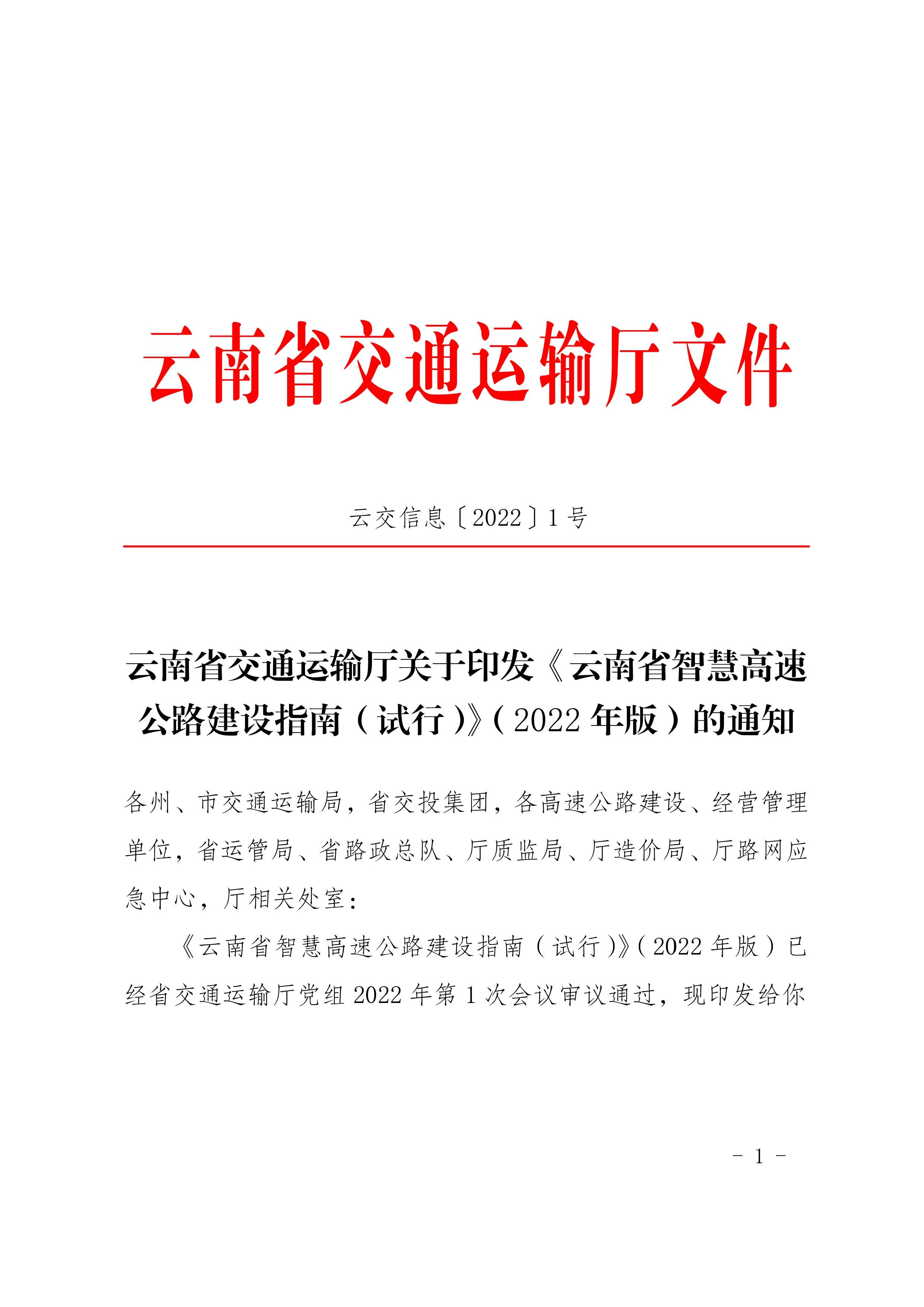 欧乐影院 关于印发《云南省智慧高速公路建设指南(试行)》(2022年版)的通知