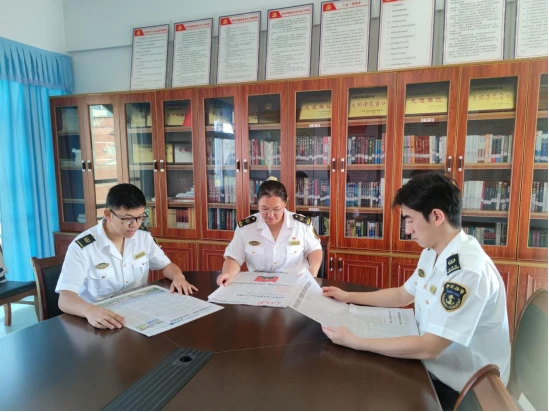 西双版纳海事局党总支“送学上门”,向驻守国门的关累海事处一线值班人员和行业从业人员宣讲党的二十大精神。