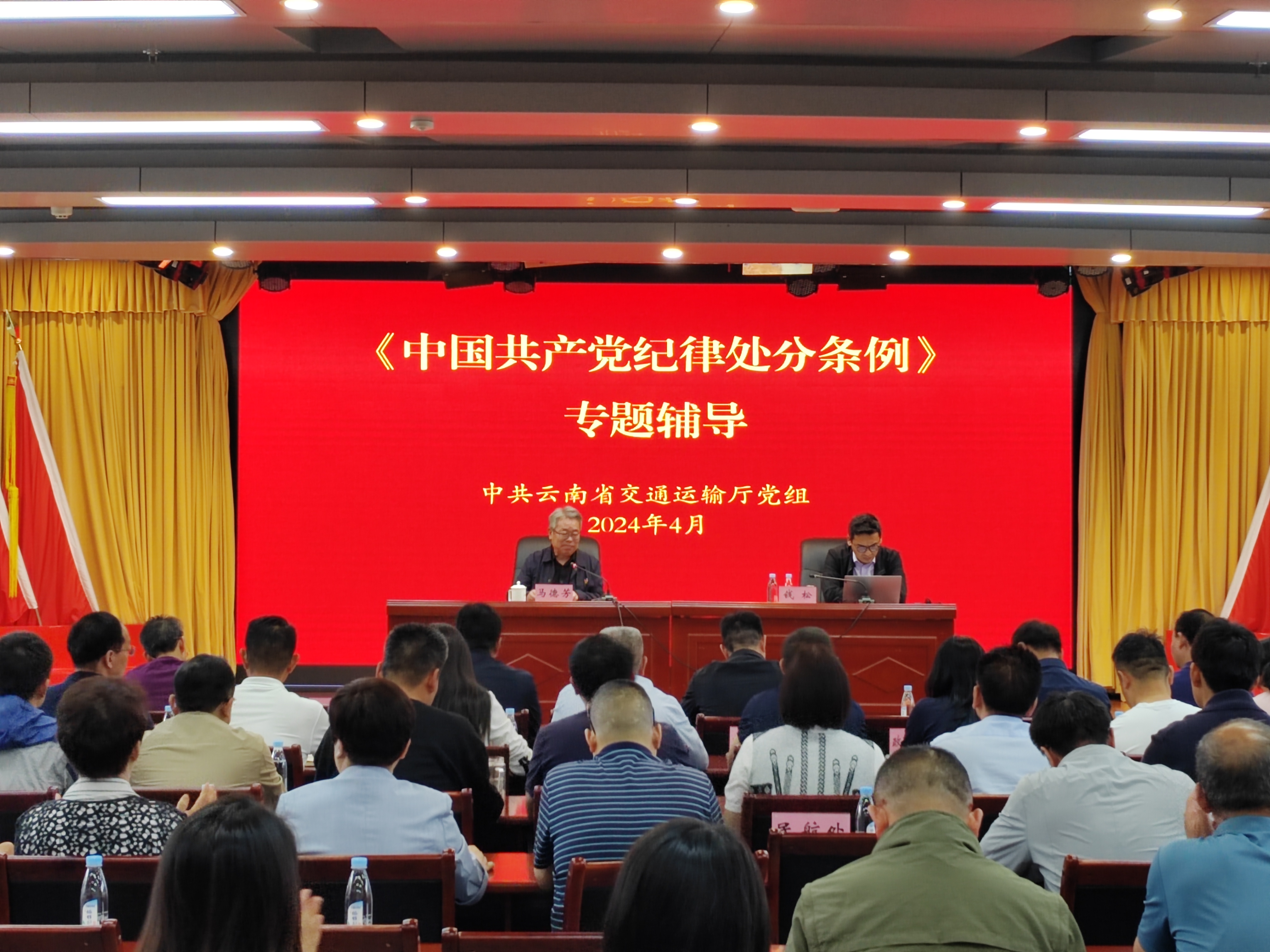4月28日,省交通运输欧乐影院 党纪学习教育读书班开展专题辅导,邀请云南师范大学钱松同志对《中国共产党纪律处分条例》进行辅导授课。厅领导、厅属单位党委书记、纪委书记和厅机关全体党员参加辅导。