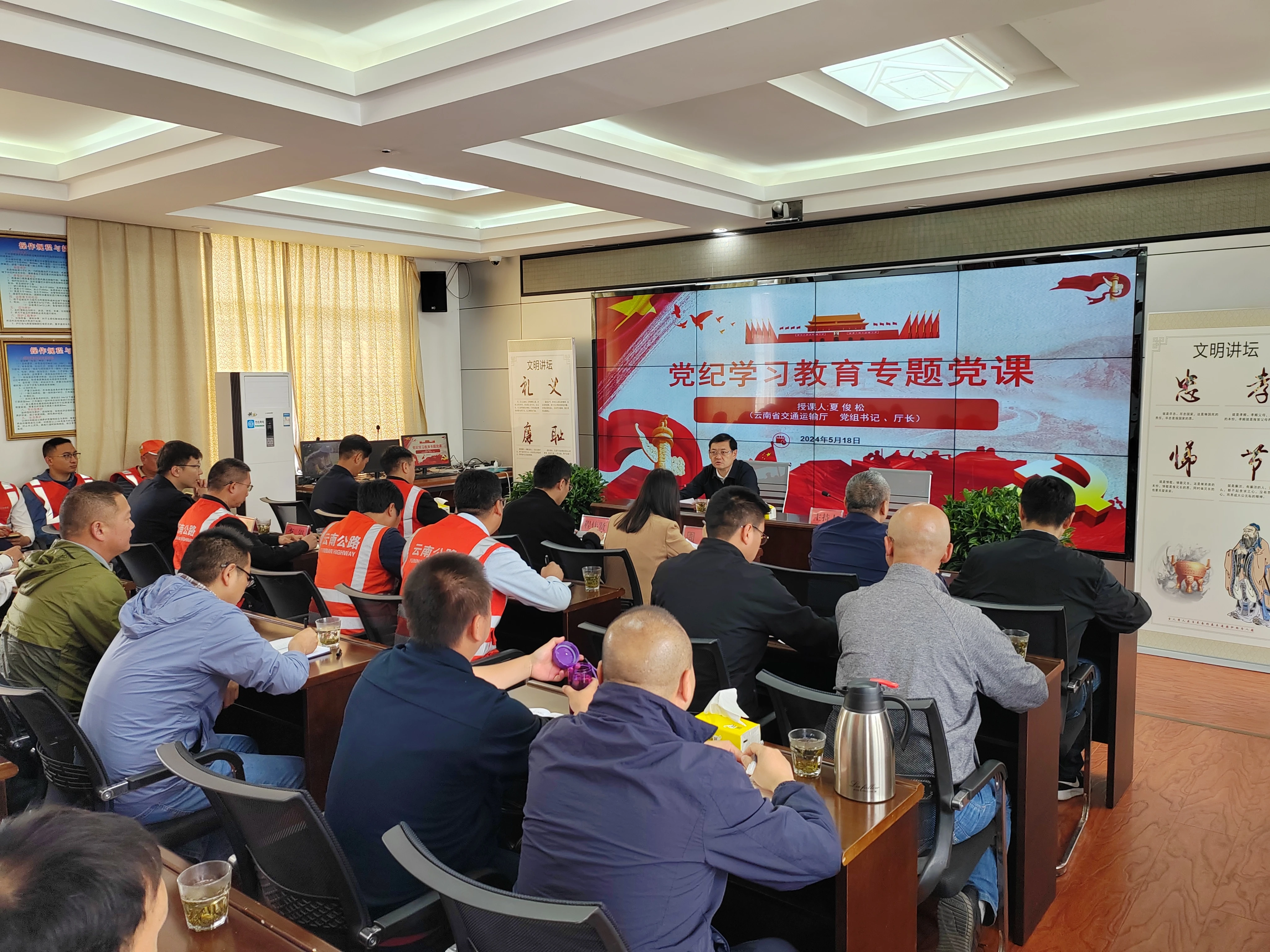 5月18日,省交通运输欧乐影院 书记、厅长夏俊松在兰坪公路分局讲授党纪学习教育专题党课。兰坪公路分局全体干部职工和厅驻村工作队员参加活动。