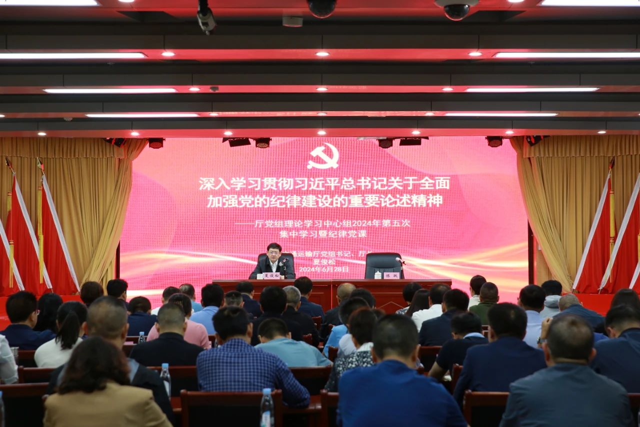 6月28日,省交通运输欧乐影院 举行2024年理论学习中心组第五次集中学习暨纪律党课。党组书记、厅长夏俊松以“深入学习贯彻习近平总书记关于全面加强党的纪律建设的重要论述精神”为主题为与会党员干部讲党课。