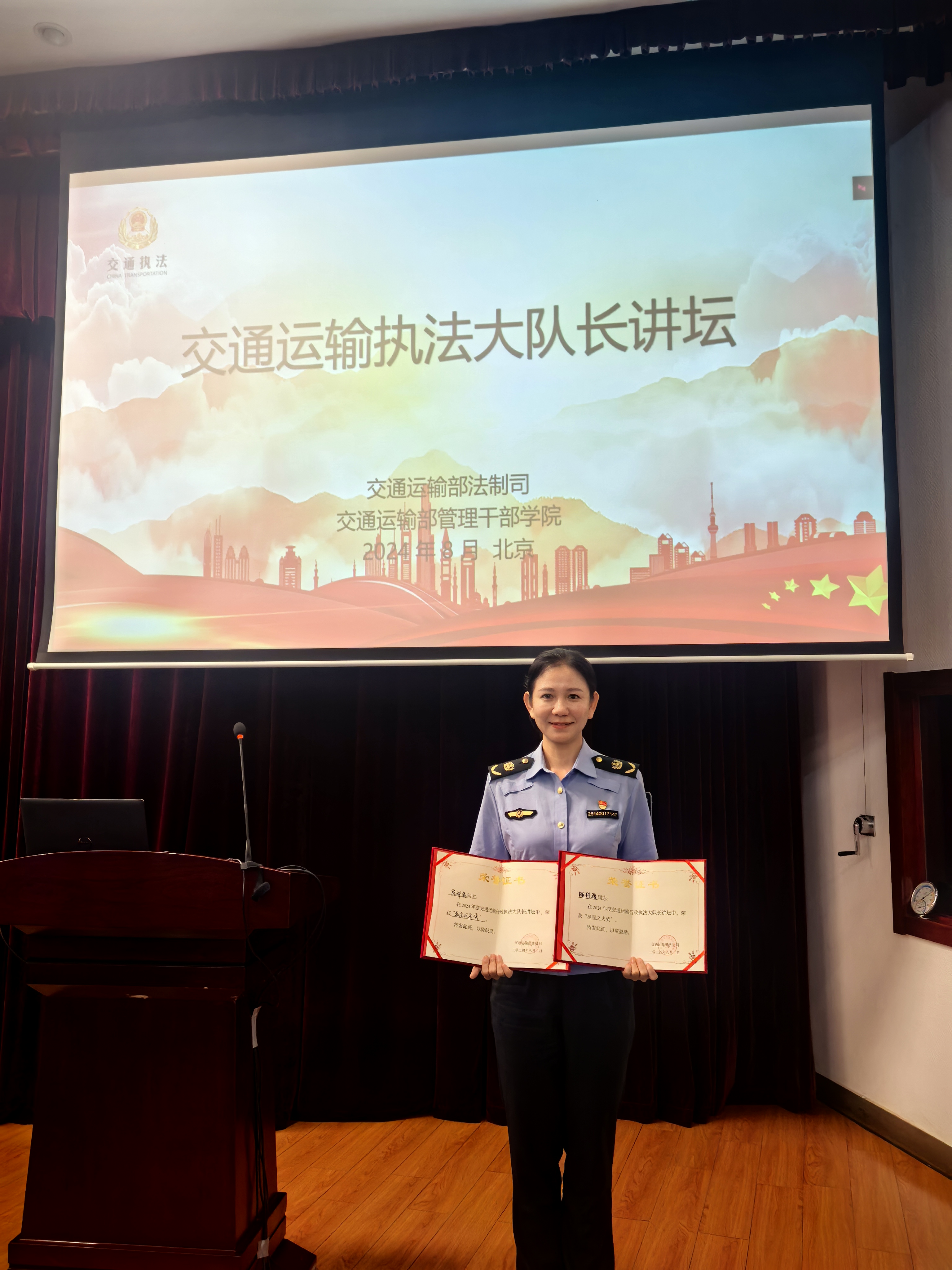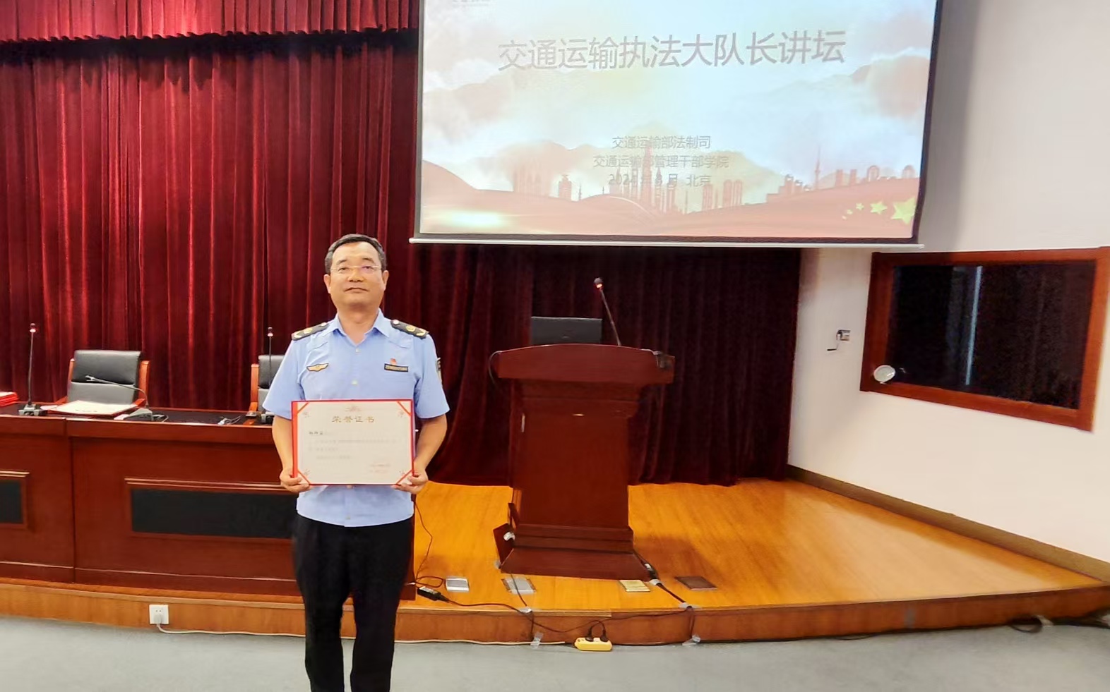 近日,在交通运输部举办的“交通运输行政执法大队长讲坛”活动上,省交通执法局德宏支队芒市大队大队长杨坤霖同志、德宏州交通运输综合行政执法支队盈江大队副大队长陈科逸同志获得嘉奖并交流工作经验。
