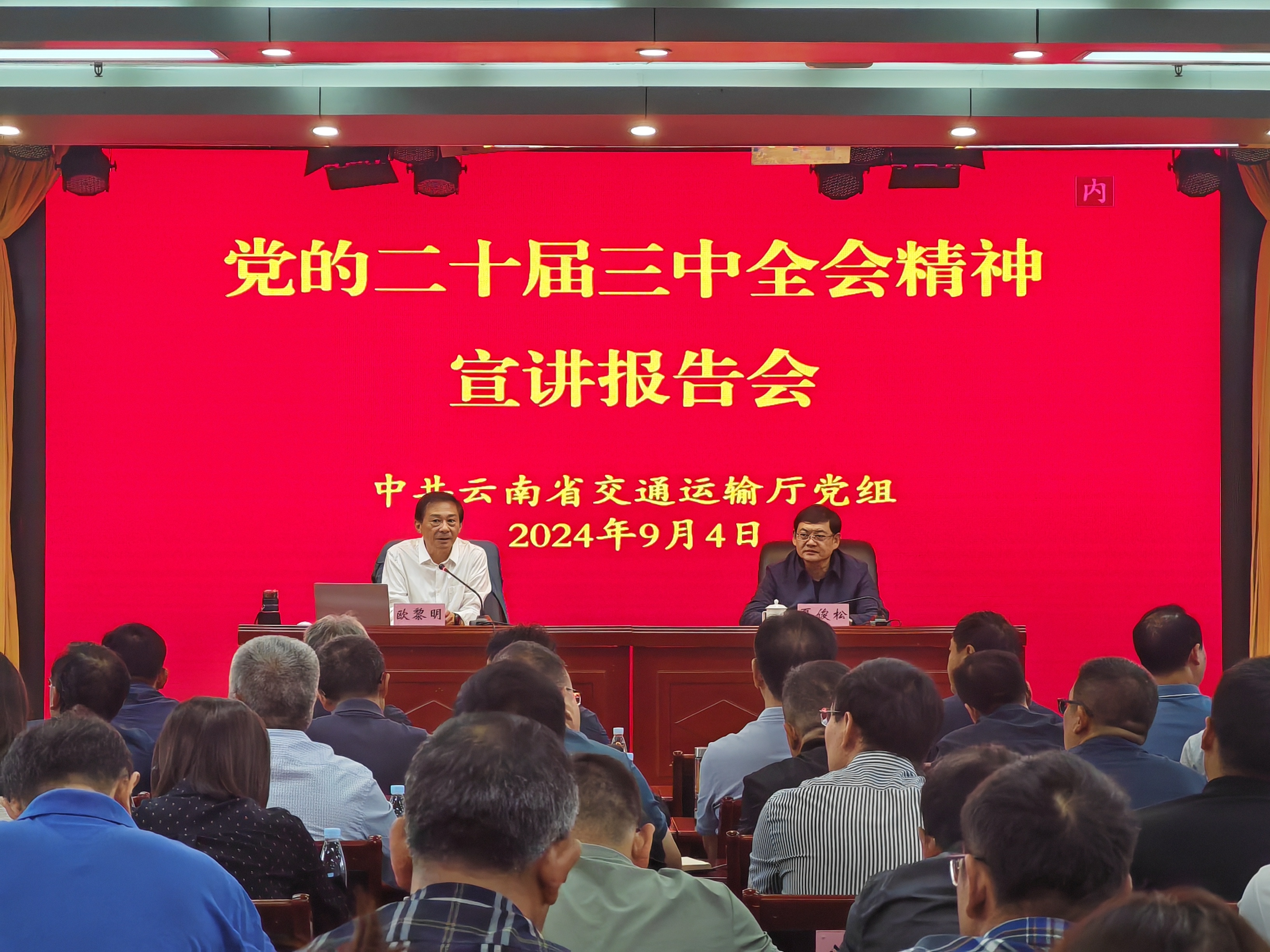 9月4日,省交通运输欧乐影院 举行党的二十届三中全会精神宣讲报告会,邀请省委省直机关工委党的二十届三中全会精神宣讲团成员、省委党校教授欧黎明同志进行宣讲。欧乐影院 书记、厅长夏俊松主持会议,省交投集团、厅属单位党委书记、厅机关全体干部职工参加会议。