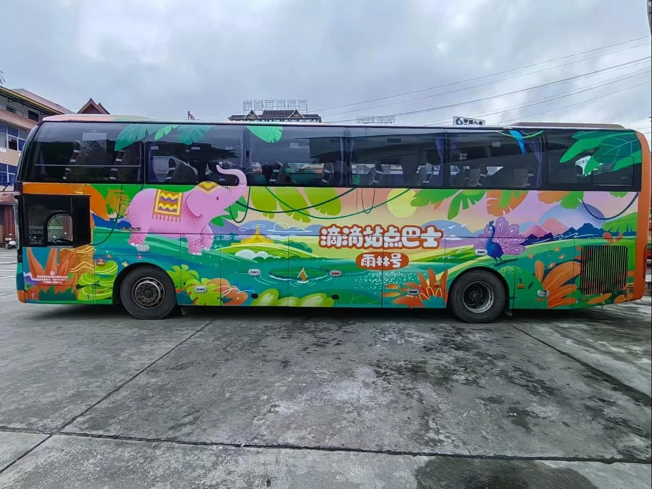 一辆辆具有西双版纳当地特色的“雨林号”彩蛋大巴出现在往返景洪至中国科学院西双版纳热带植物园的线路上。巴士车身进行了大胆创新和精心改造,车身设计融入了西双版纳丰富的热带雨林元素,绚丽的色彩、生动的图案,仿佛将乘客带入神秘而美丽的热带雨林之中,在旅途中感受西双版纳的独特魅力。目前,景洪往返中国科学院西双版纳热带植物园站点巴士线路一天发车12个班次,单程运行时间1小时10分钟,票价为16.8元/人次。