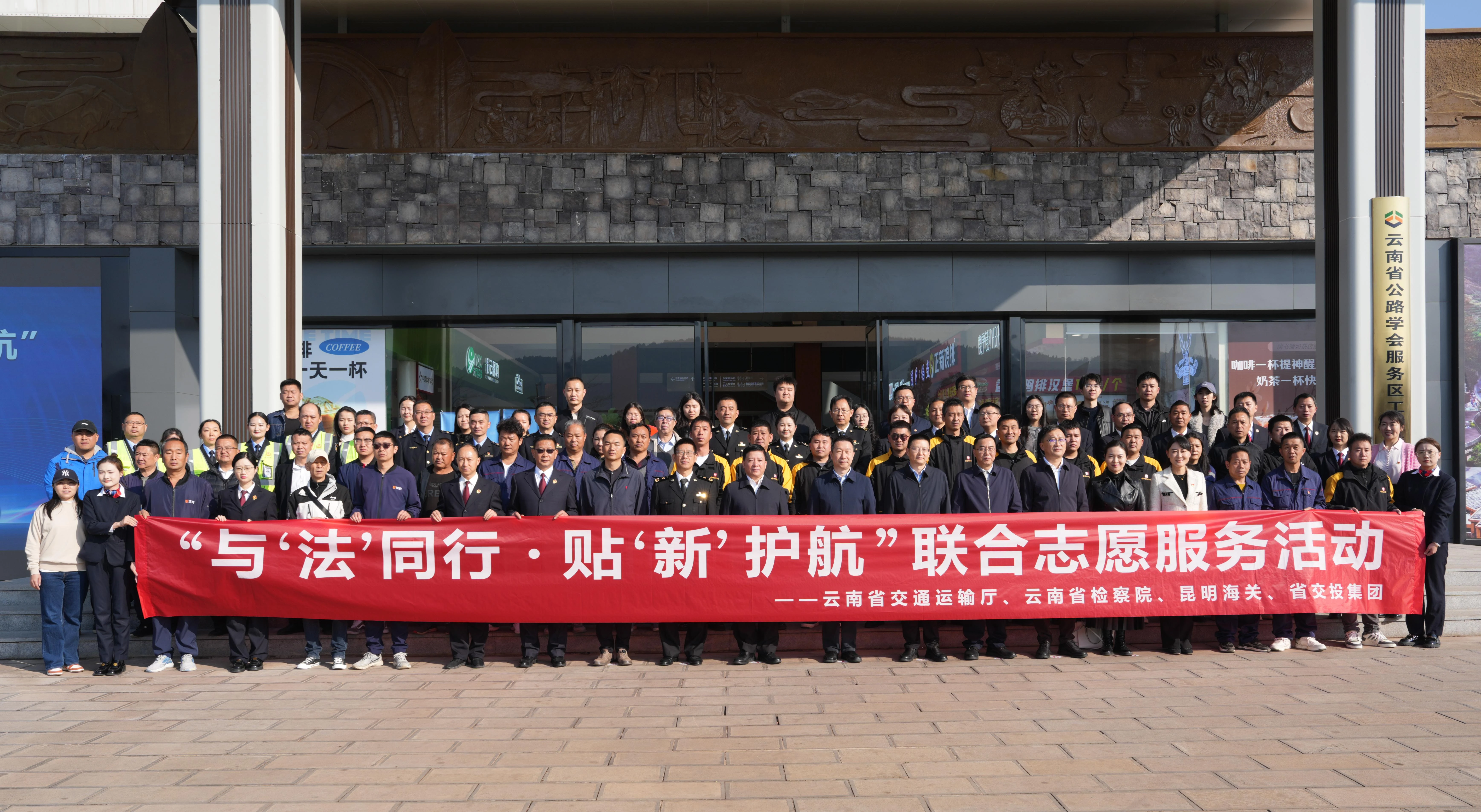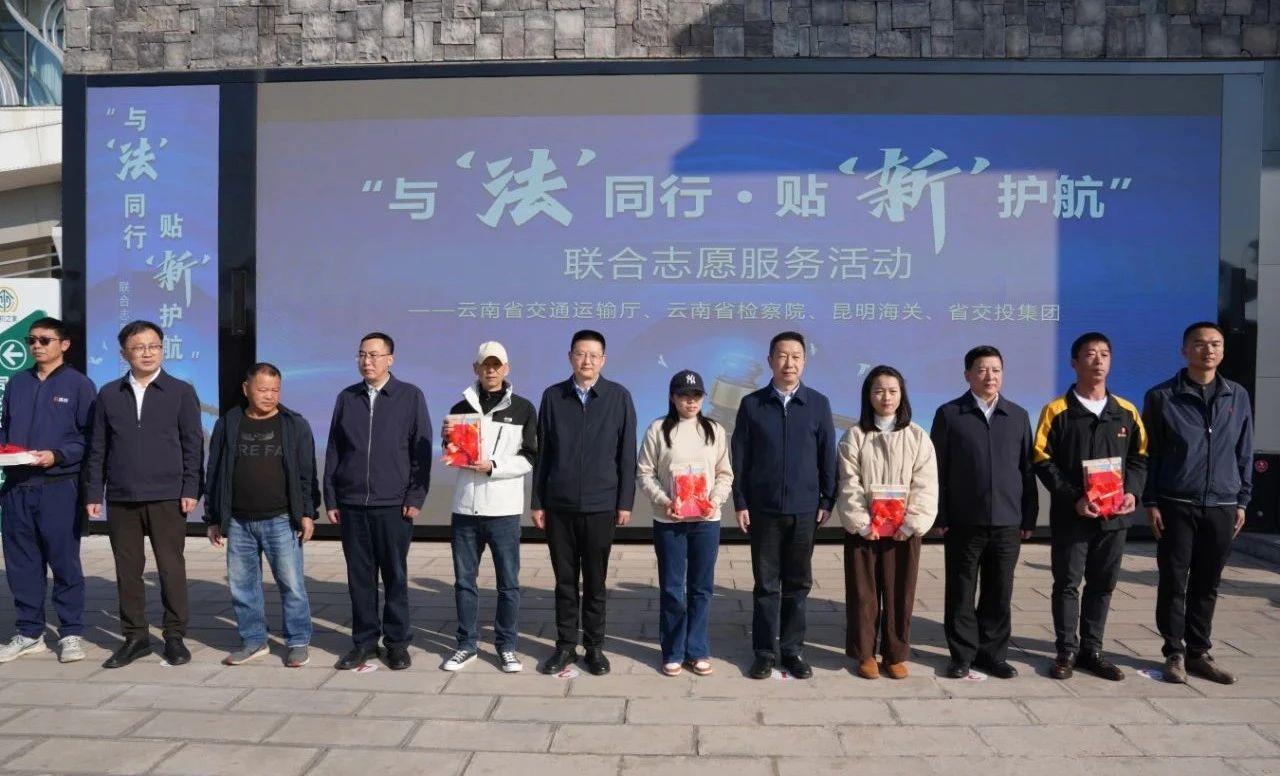 3月5日,省交通运输厅联合省检察院、昆明海关、省交通执法局、省交投集团,在读书铺服务区开展“与‘法’同行·贴‘新’护航”志愿服务活动。相关单位负责人出席,省委社工部相关负责人到场指导,交通运输领域新业态、新就业群体代表共80余人参加活动。