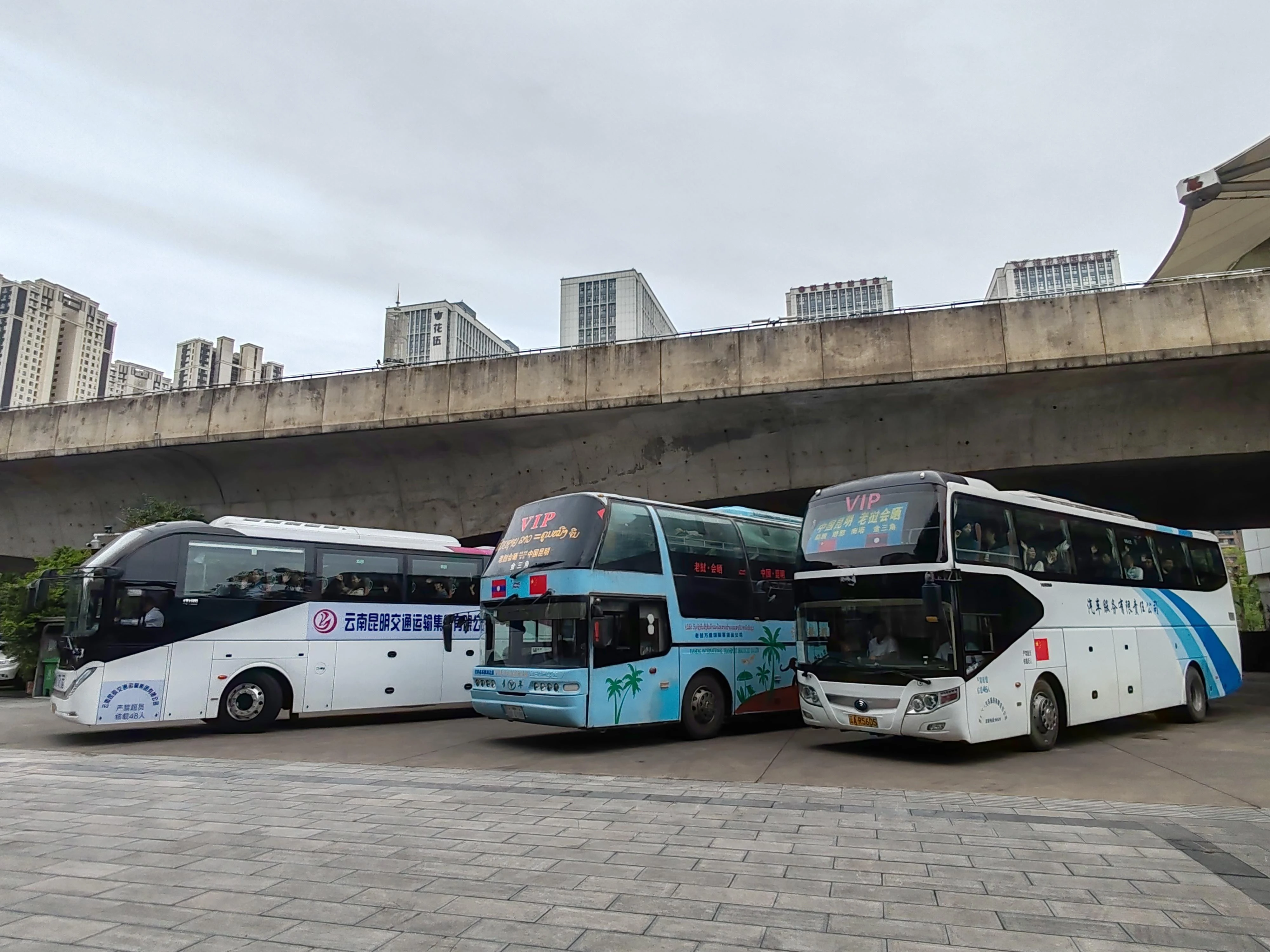 上午9点20分,随着发车指令声响,搭载乘客的9辆客车和满载蔬菜、日用百货的5辆货车分别从中国东盟自贸区昆明国际客运站、西双版纳东盟国际综合交通服务中心及云南建投物流云上营家国际供应链示范中心同步发车,共同开展跨境运输任务。其中,客车车队从磨憨口岸出境,经过老挝磨丁口岸后开往老挝会晒;货车车队从中国昆明出发,从勐腊勐满口岸出境,途经老挝班海口岸、班象果,到达老挝会晒。货车全线单程约880公里,客车全线单程约910公里,预计用时3天。