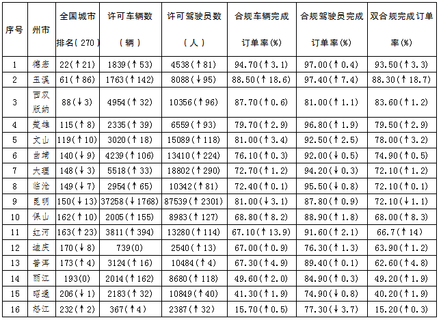 为督促网约车平台公司依法依规开展经营,加快网约车合规化进程,进一步规范我省网约车行业健康可持续发展,省交通运输厅定期向社会公开发布《云南省网约车合规化情况月报》,欢迎广大市民参与监督,积极向地方交通运输主管部门或12328监督热线举报不合规平台、驾驶员和车辆线索。