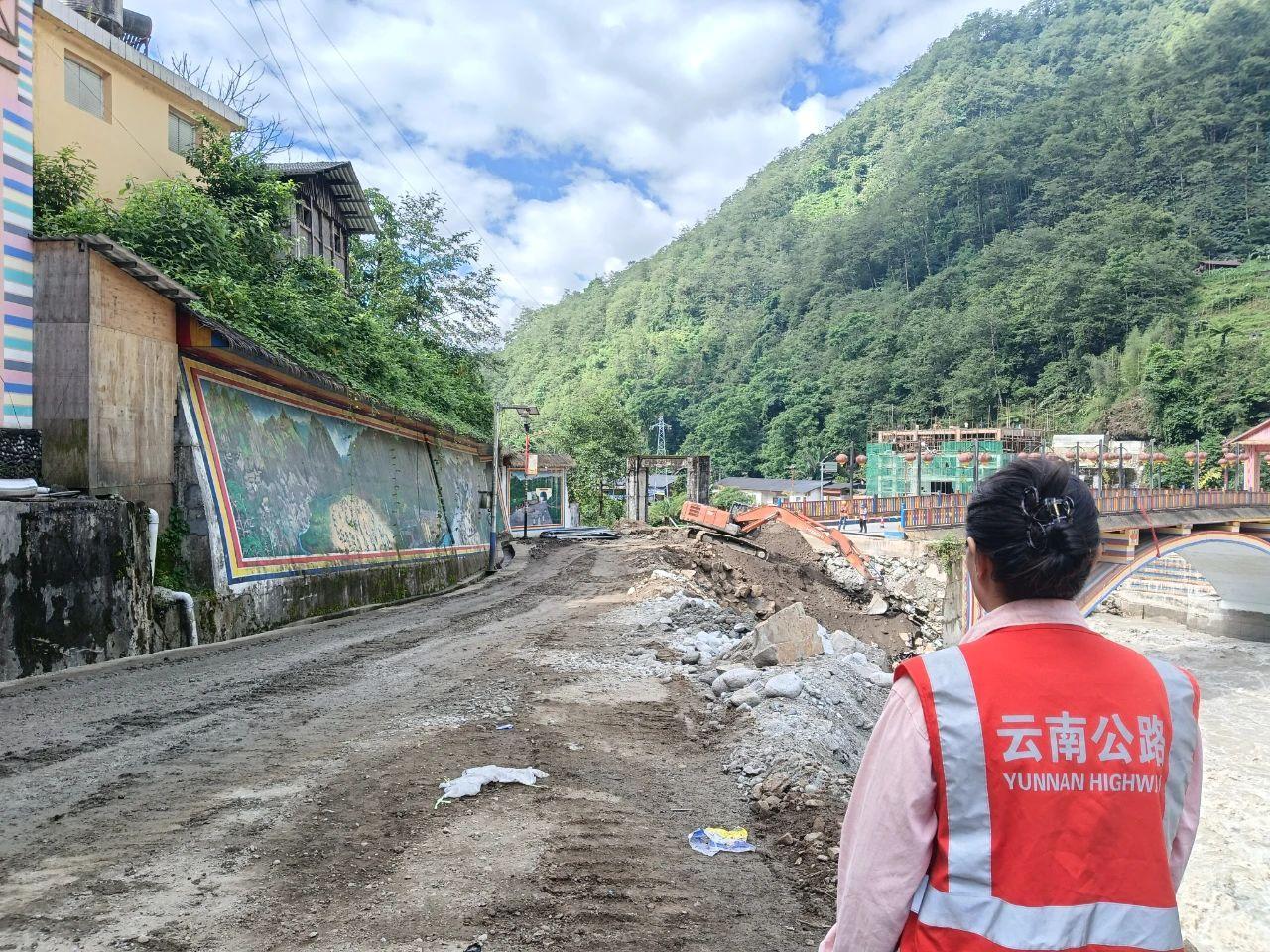 该路基垮塌路段是此次独龙江公路抢通的最后一个灾毁点。主线公路路基垮塌70余米,且位于公路末端。
