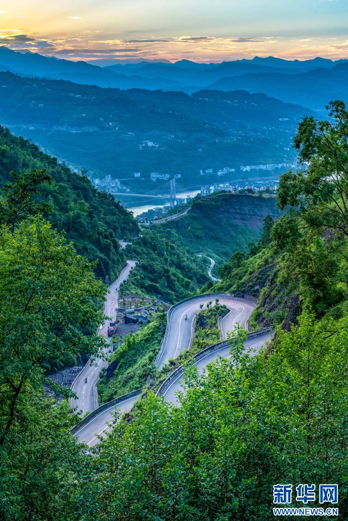 夕阳映照下蜿蜒山间的乡村公路(5月2日摄)。新华网发(曾三东 摄)