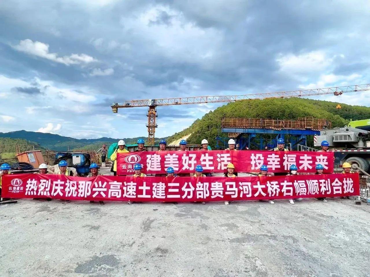 8月10日,那兴高速全线控制性工程“两桥四隧”之一的贵马河大桥右幅顺利合龙。