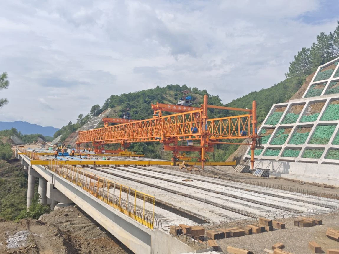 8月2日,宣富高速公路项目团田坡2号大桥T梁顺利架设完成。