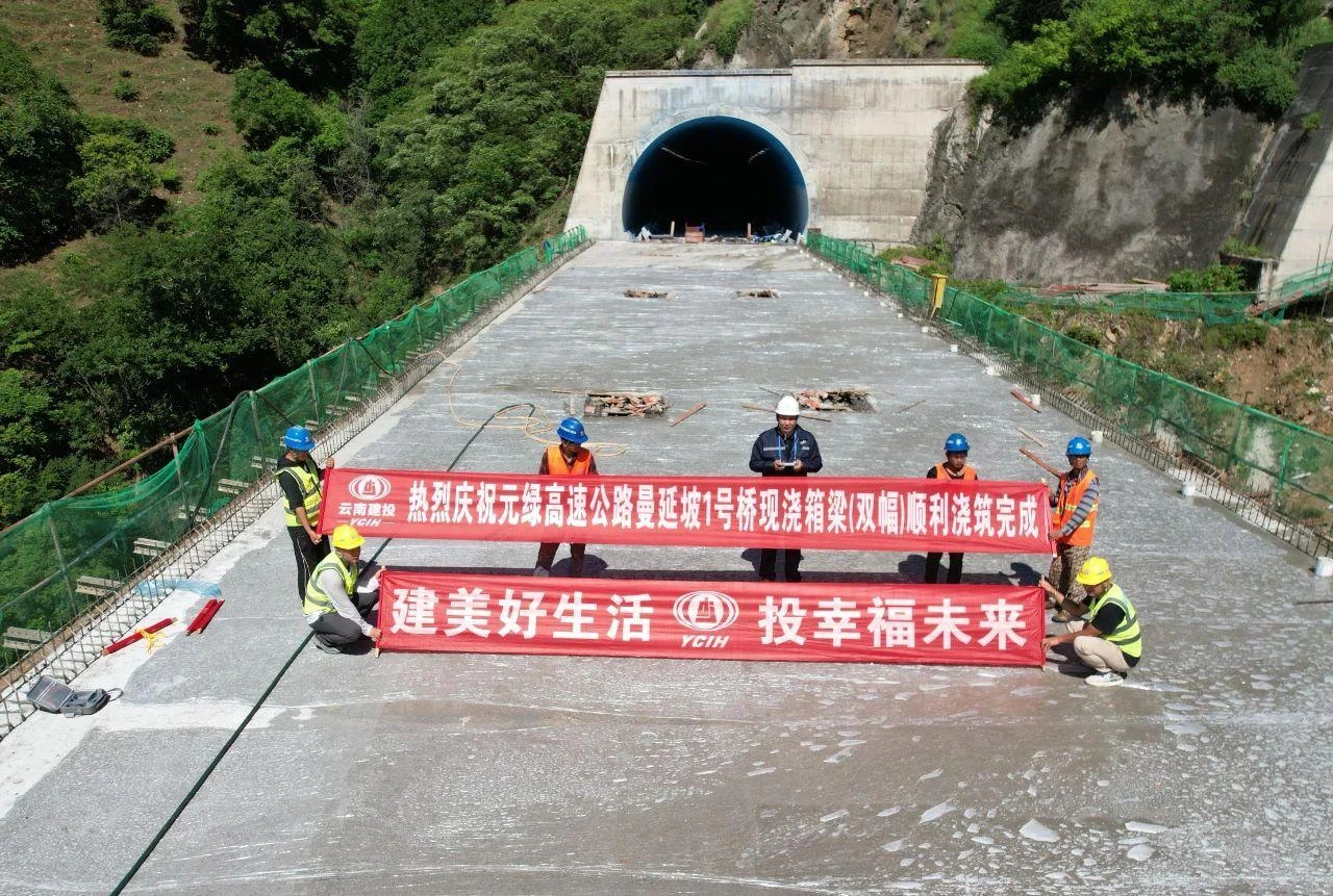 8月27日,元绿高速公路项目曼延坡1号桥双幅现浇箱梁顺利浇筑完成。