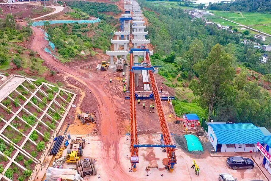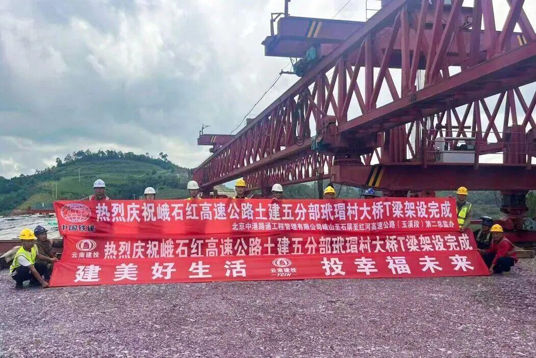 8月24日,峨石红高速公路(玉溪段)项目玳瑁村大桥T梁架设完成,标志着全线最高桥梁的上部结构工程圆满收官,为项目后续施工提供了便利的运输通道。