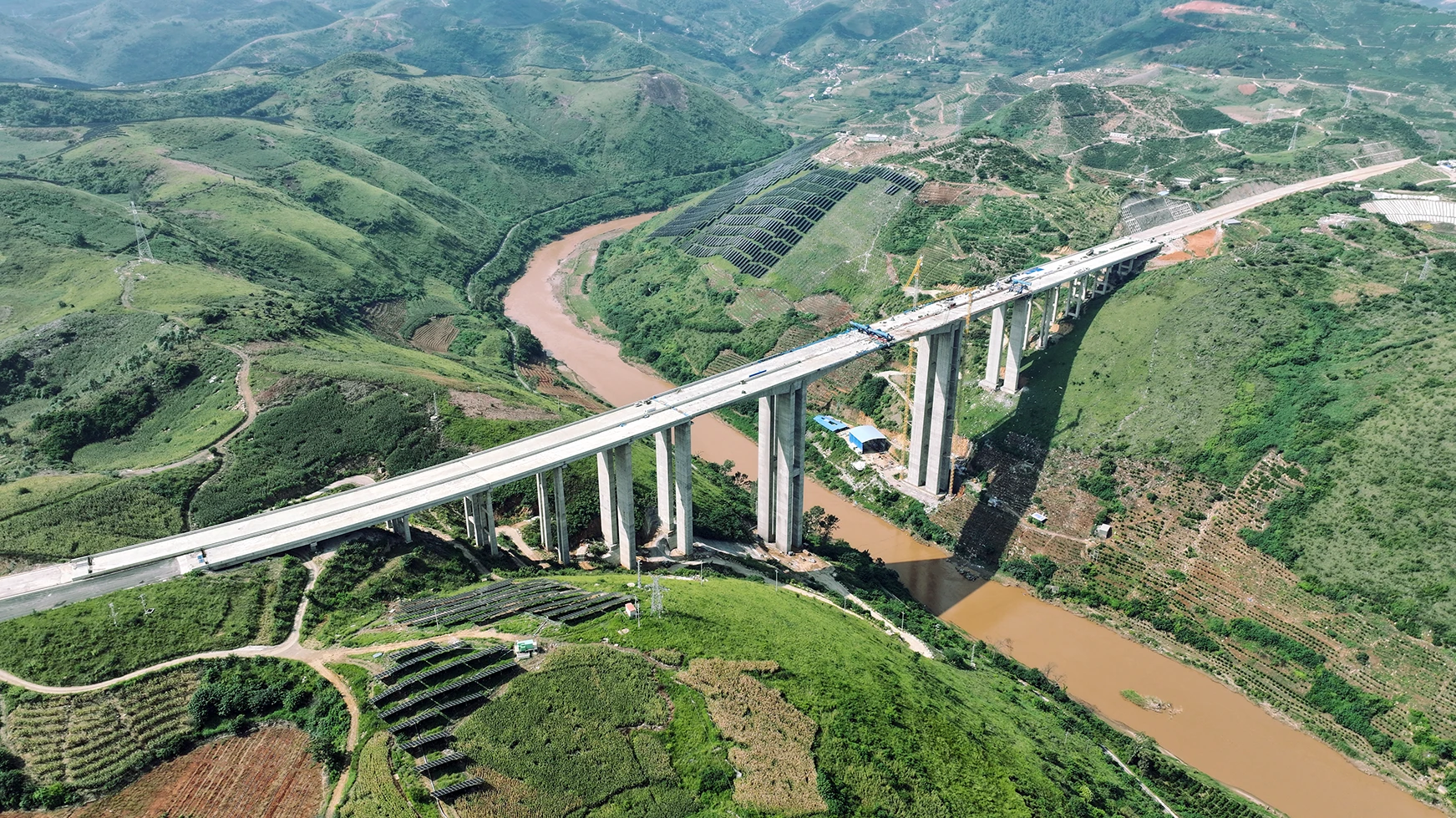 小坡头2号大桥地处滇东北山区V型深谷,地势陡峭,场地狭窄,是会巧项目技术最复杂、施工难度最大的控制性工程之一。小坡头2号大桥及主线的全幅贯通,为项目整体推进按下了“加速键”。