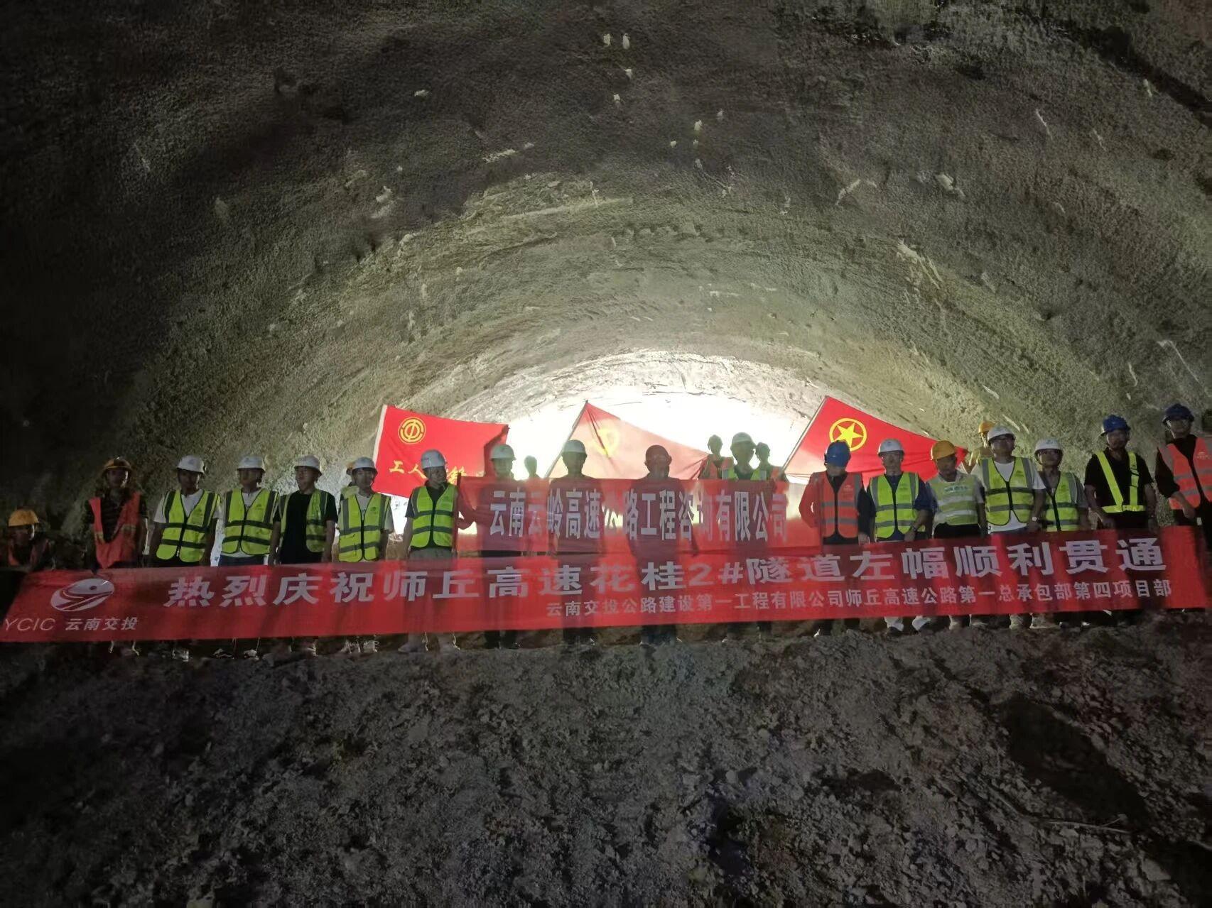 近日,师丘(曲靖段)高速公路花桂2号隧道左幅顺利贯通。