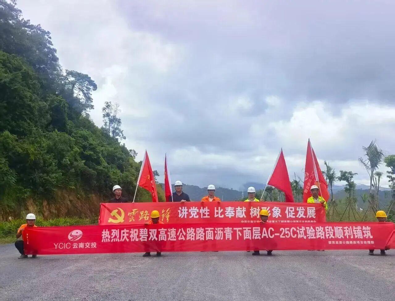 近日,碧双高速公路沥青混凝土下面层试验路段顺利铺筑。