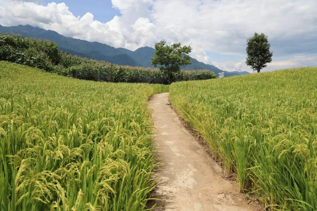 金秋时节,驱车行驶在泸水市乡村公路上,两侧逐黄的稻谷与白色的水泥路相映成趣,满载各种瓜果蔬菜的农用车与色彩鲜艳的农村客运班车擦肩而过,勾勒出一幅流动的丰收图景。