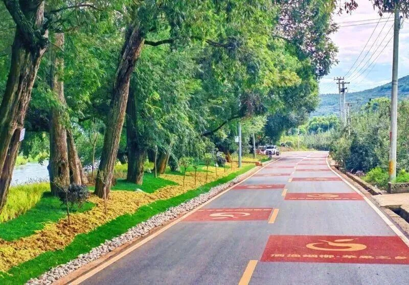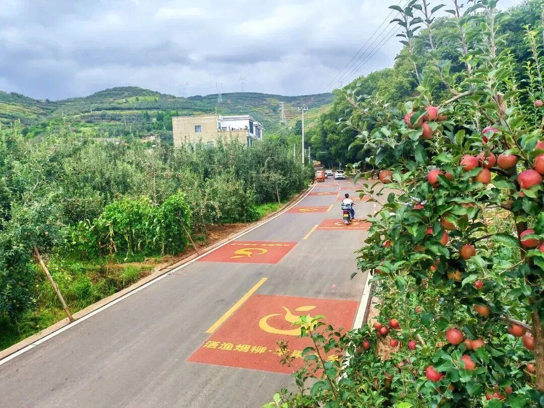 公路两侧因地制宜打造“洒渔烟柳、苹果之乡”“山水大关、筇竹之乡”等景观带,彩色防滑路面融入地方文化元素,成为游客打卡新地标。