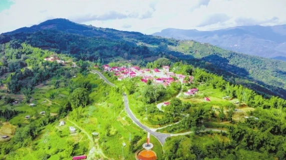 刺树丫口自然村距中缅边境线仅50米,这里依托沿边公路的“27道拐”,不仅打造了“赐福彝寨”旅游景区,更发掘出独特的“边关风情”,掀起了红色边关游“新热潮”。