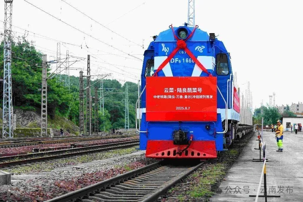 “陆良蔬菜号”中老铁路冷链班列首发。周涛 摄