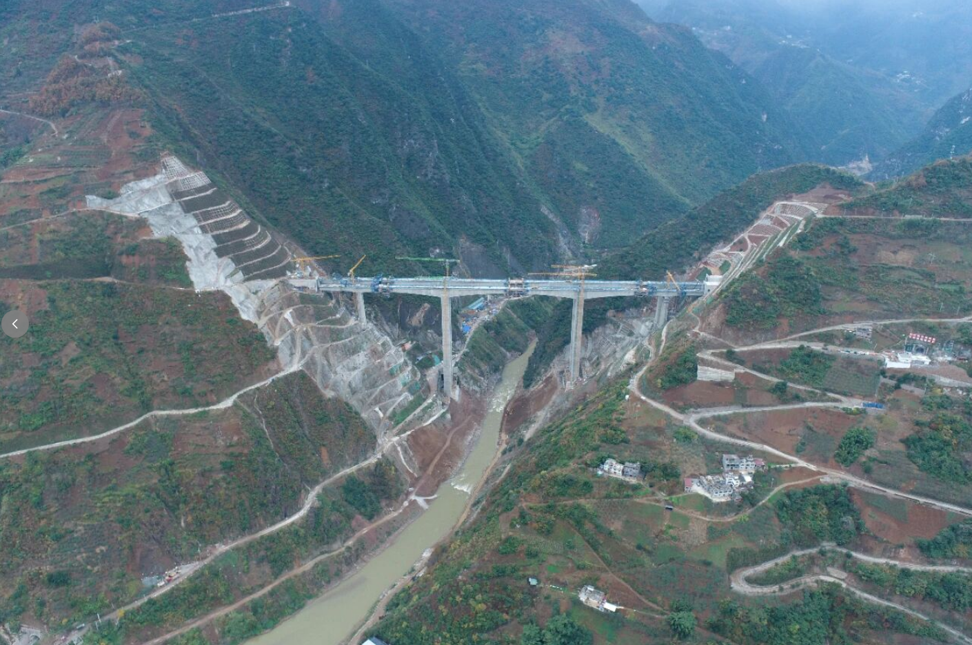 洛泽河特大桥位于云南省彝良县,跨越深切峡谷,两端与隧道相接,为山区铁路典型的“两隧夹一桥”V形地貌。桥梁长524.9米,为双幅单线预应力混凝土刚构连续梁桥,主跨180米,最大墩高达150米。建成后的洛泽河特大桥将成为目前世界时速350公里高速铁路跨度最大、墩身最高预应力混凝土梁桥。