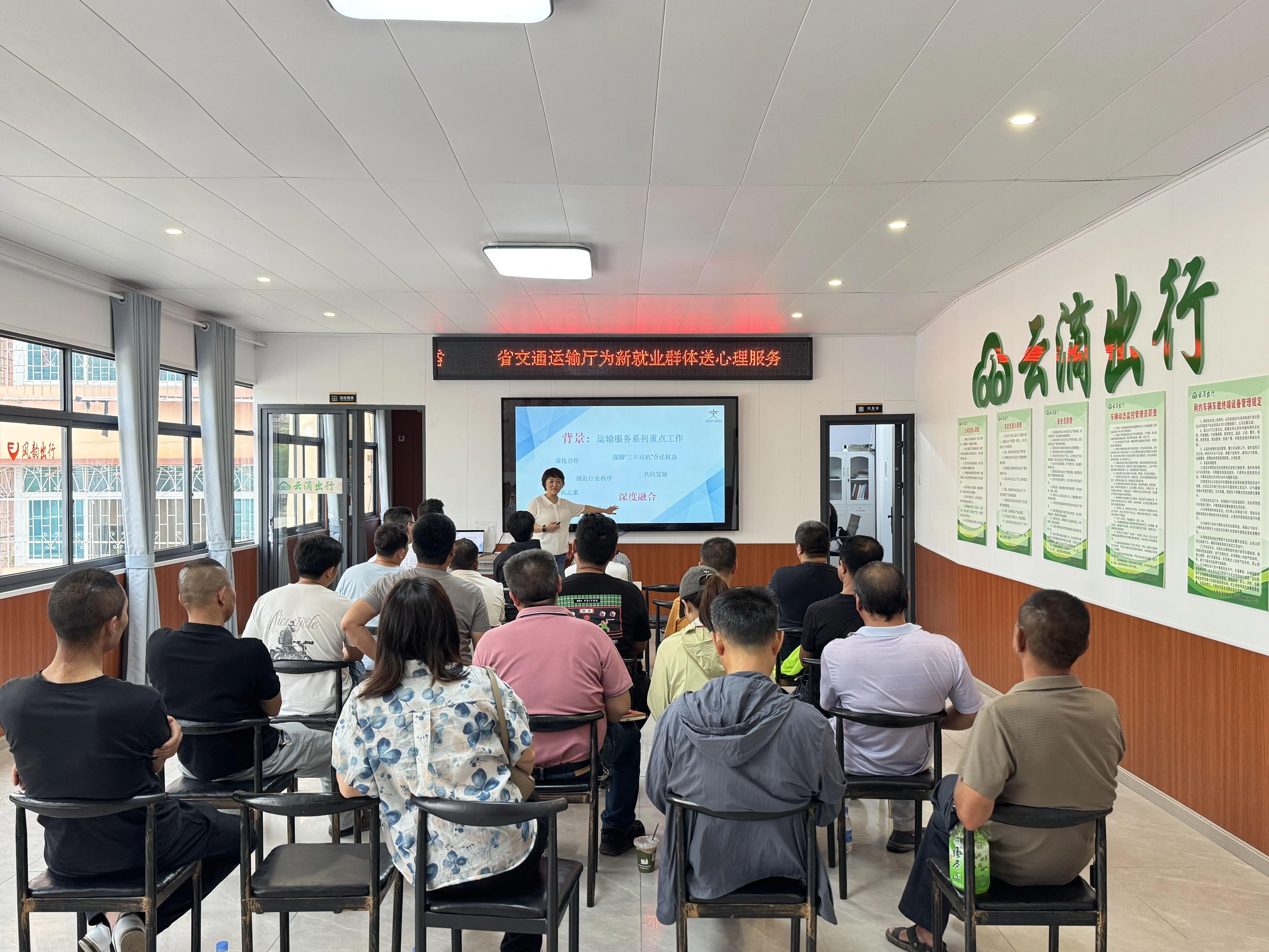 4月10日,省交通运输厅在西双版纳州风韵出行“司机之家”开展“为交通运输新就业群体送心理健康服务”活动,为30余名货车、网约车、出租车司机及平台企业管理人员送去一堂题为“守望心田 你我并肩”的暖心课。