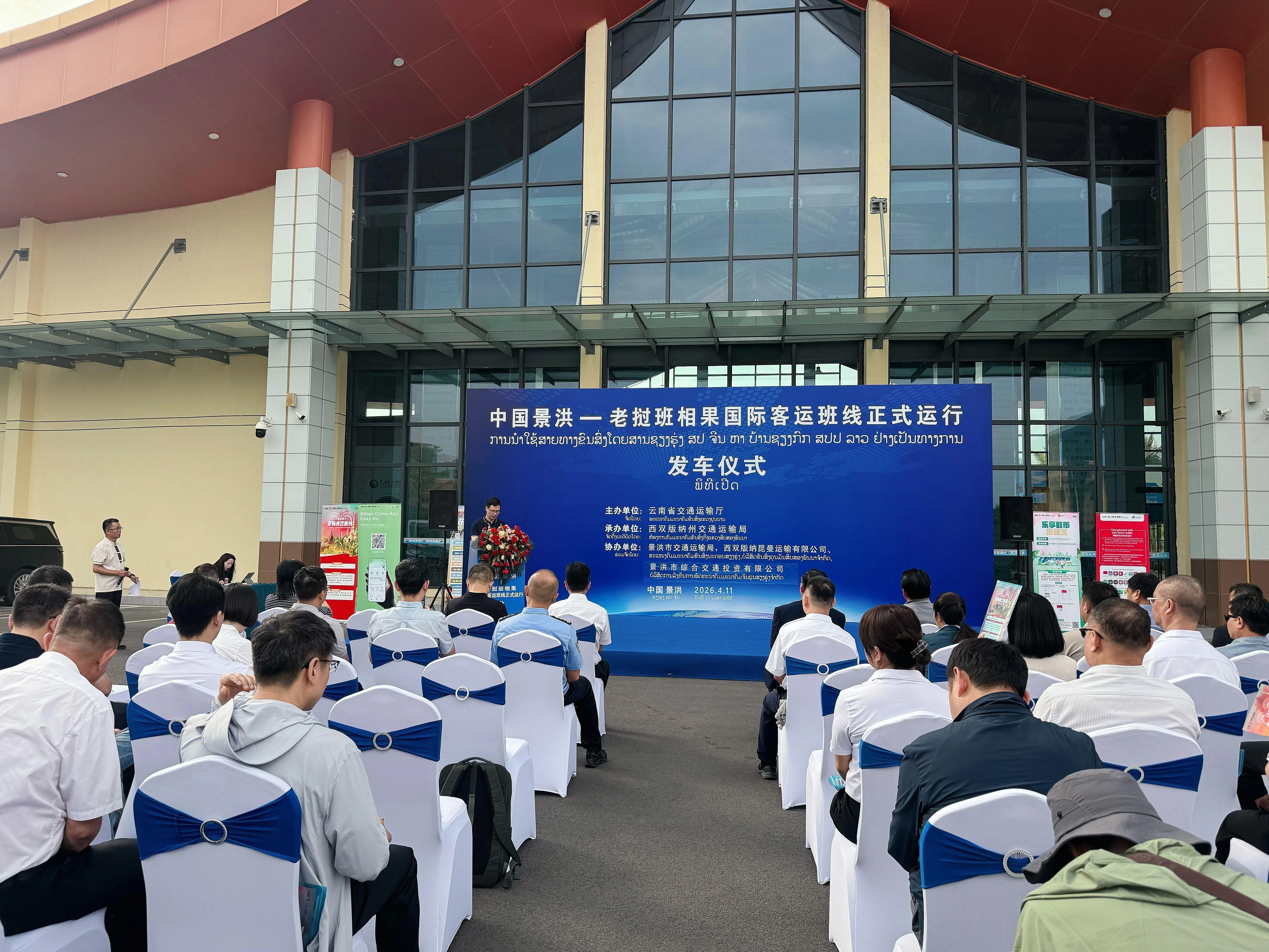 4月11日,中国景洪至老挝班相果客运班线正式运行发车仪式,在西双版纳东盟国际综合交通服务中心举行。欧乐影院 副厅长杨泽龙、老挝琅南塔省公共工程运输厅副厅长康腊·坎沙雅及老方代表团出席活动,共同见证中老国际道路运输合作再结硕果。