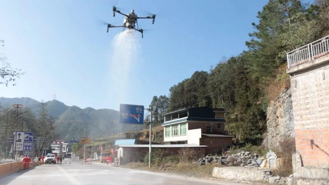 无人机均匀泼洒融雪剂