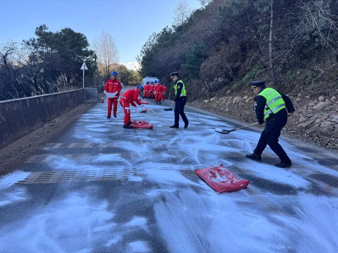 永胜公路分局联合执法部门,在G554线永胜-祥云路段以“桌面推演+实战操作”双模式演练;玉龙公路分局则将安全教育融入演练,向群众普及冰雪天气行车及避险知识。