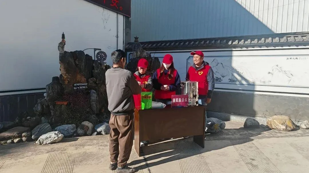 祥云公路分局青年志愿者在下庄停车服务区搭建 “暖冬志愿服务站”,开展“暖意融冬寒,养路保平安”主题志愿服务。
