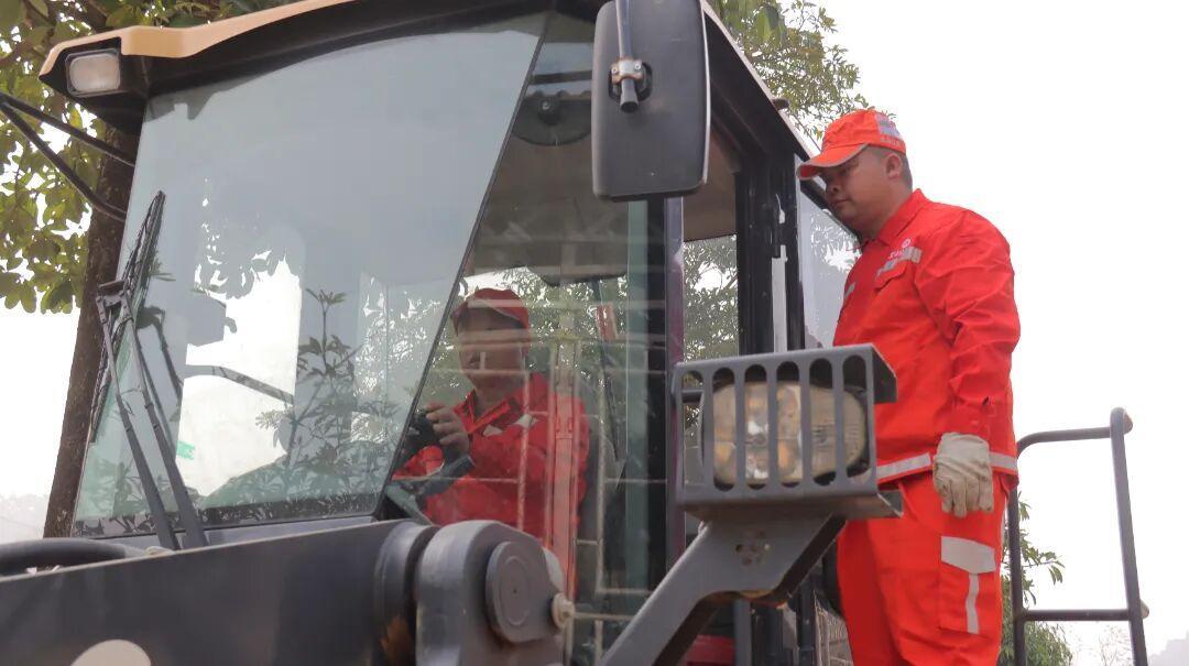 刚开始学开装载机时,陆德林紧张得手心冒汗。钟红伟在一旁耐心地教他:“油门给小了车会顿,给大了容易憋缸,就像和老伙计对话一样, 要摸透它的脾气。”师傅沉稳的话语,让陆德林慢慢静下心。他渐渐明白,养护不是冰冷的操作,而是人与机械、人与公路的默契。