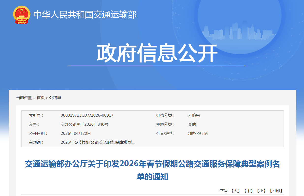 来源:交通运输部       2026-04-22 15:45 【字体:
